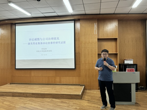 6月6日下午,政法学院邀请河南大学李春涛教授为学院师生作了“诉讼威慑与公司治理优化——康美药业集体诉讼的事件研究证据”的学术讲座。讲座由学院院长代志明主持,社会工作系、公共事业管理系以及法学系的教师和学生聆听了此次讲座。