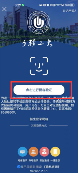 广大师生通过校外网络或手机自身流量访问学校i轻工大app和智慧校园门户时,请使用扫码、人脸识别或手机验证码登录,登录说明如下: