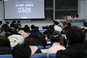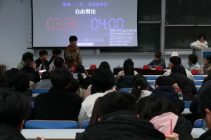 本次辩论围绕当代大学生的爱国情怀展开,正方观点为“当代大学生爱国情怀心重于行”,反方观点为“当代大学生爱国情怀行重于心”。此次比赛分为立论、攻辩、自由辩论、总结陈词四个环节。首先由双方一辩进行开篇立论,用最精练的语言阐明本方的基本观点、逻辑框架、理论依据等,接着是针锋相对的攻辩和精彩纷呈的自由辩论,再接着由四辩进行总结陈词,最后由老师总结此次活动。辩论赛程序设置合理、比赛环节紧扣,为辩手们提供了唇枪舌战、正面交锋的舞台,赛场气氛自始至终都非常活跃,每个环节都高潮迭起,参赛选手大胆辩论,语言流畅且极具个性化,大家引经据典,妙语横飞,让观众感受到了一场别具特色的辩论盛宴,大家报以一次次热烈的掌声。