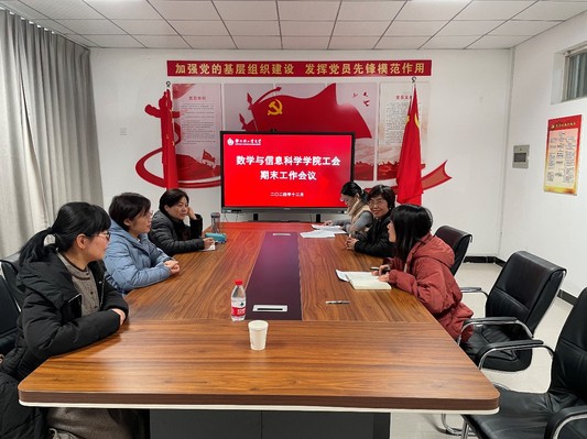 12月19日下午,数学与信息科学学院在东风校区东一楼205会议室召开工会工作会议,学院党委书记郭晓丽、全体工会委员参会,会议由工会主席矫菲主持。