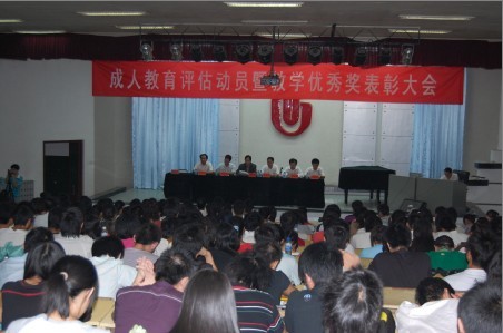大会在庄严的国歌声中拉开了序幕。陈江风副校长首先对会场上广大师生表现出的良好精神风貌和较高的文化素养给予了充分的肯定,并代表学校对在2007—2008学年成人教学工作中做出突出成绩而获得继续教育学院教学优秀奖的各位老师表示崇高的敬意和热烈的祝贺。他指出,河南省教育厅将对我院开展的成人高等教育检查评估,是对我校成人教育工作的一次全面检阅,既是机遇,又是挑战。陈校长要求全体师生要高度重视,团结拼搏,无私奉献,积极为评建工作做出应有的贡献。他相信,只要全体师生团结一致,扎实工作,评建工作一定能够取得优异的成绩。