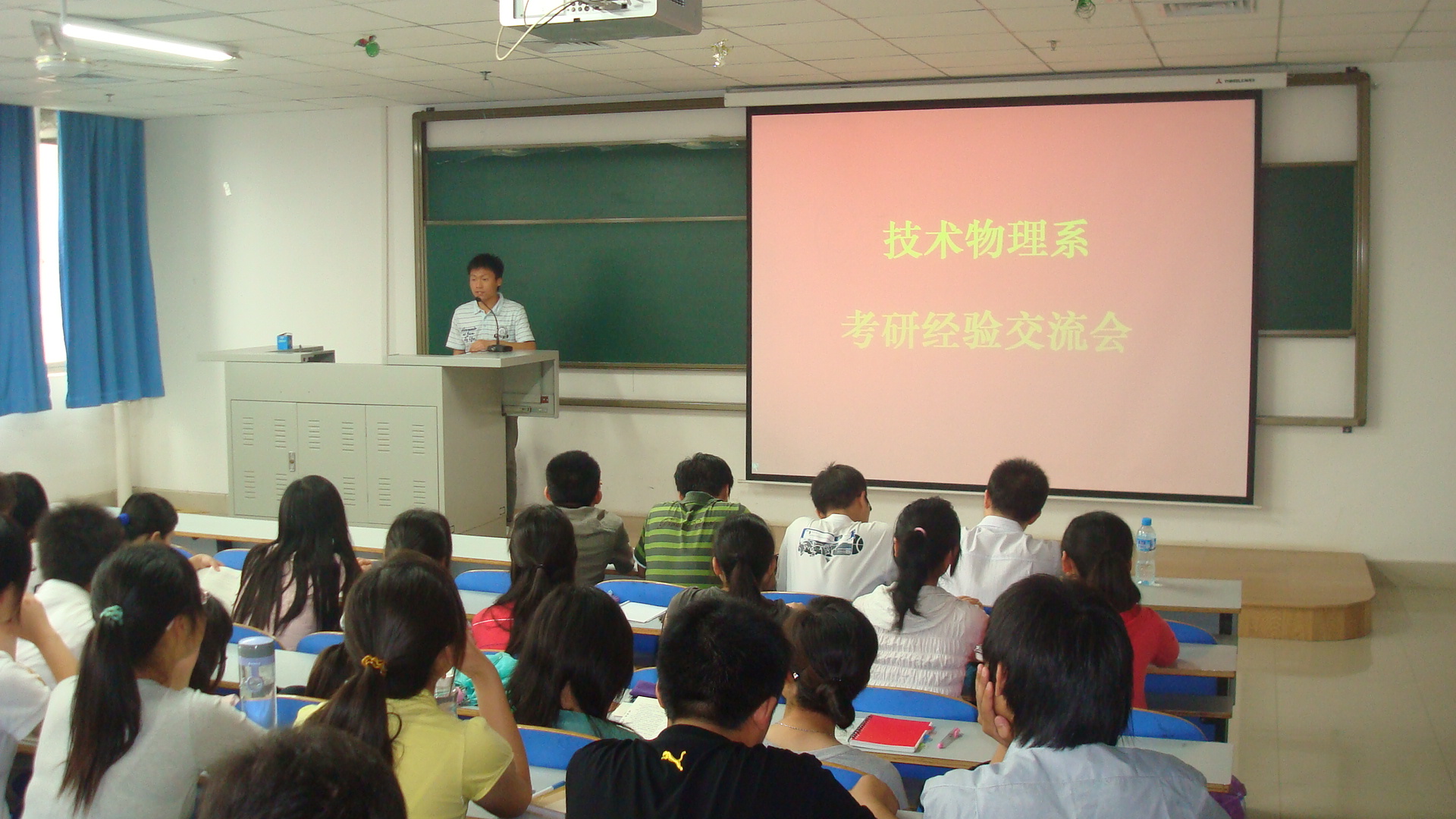 2010年5月27日下午2点技术物理系在科学校区电教楼201教室成功举办考研、就业经验交流会。我系5名优秀毕业生代表和2009级全体同学参加了这次交流会。