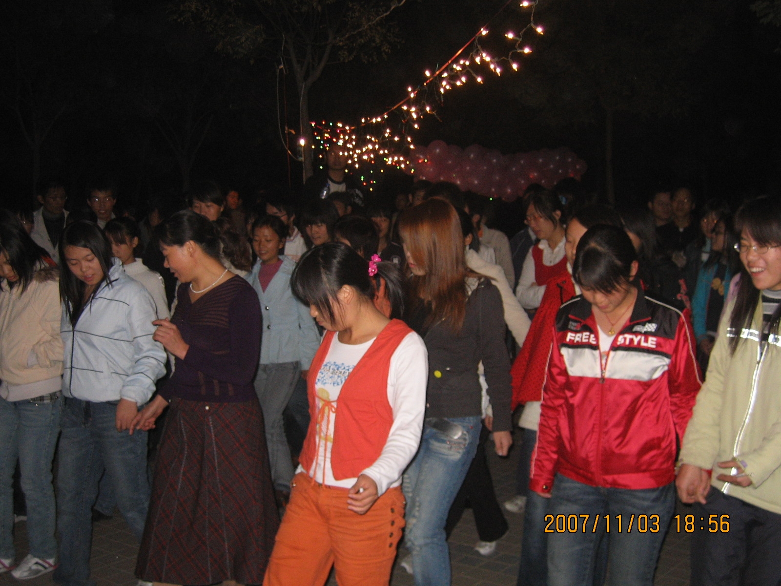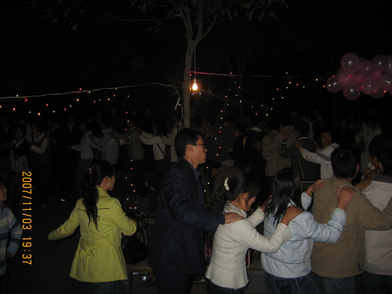 11月3日晚6:00,由机电工程学院学生会和外语系学生会共同策划,由机电工程学院女工部和生活部共同承办的 “交谊舞会”在秋实园如期举行。两院学生共聚一起,悠扬的舞曲飘荡整个校园。