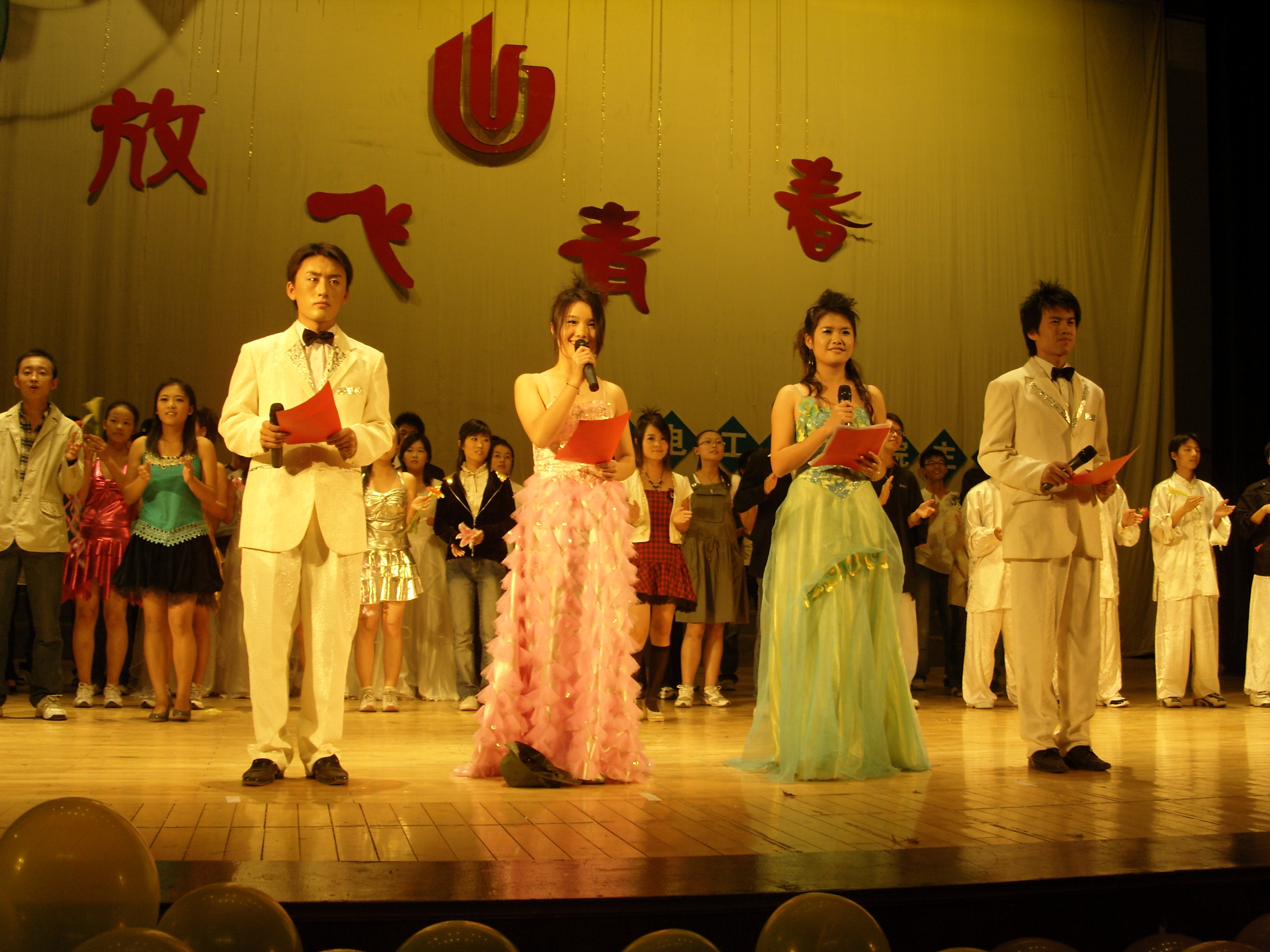 晚会围绕“放飞青春”主题,共安排16个节目,表现形式新颖,富有时代感,充满了艺术气息。不仅有散发着浓郁民族风情的朝鲜族歌舞以及同学们喜闻乐见的相声、小品、话剧、武术、街舞表演等,还有柔美曼妙的歌曲、配乐诗朗诵,更有曾获全国街舞大赛冠军的“嘻哈帮”舞蹈队梦幻般的完美演绎。晚会还特意安排了学院两位老师登台献艺。演员们兴致高昂、倾情演绎;台下,掌声雷动,荧光摇曳。整台晚会热情洋溢、精彩纷呈。