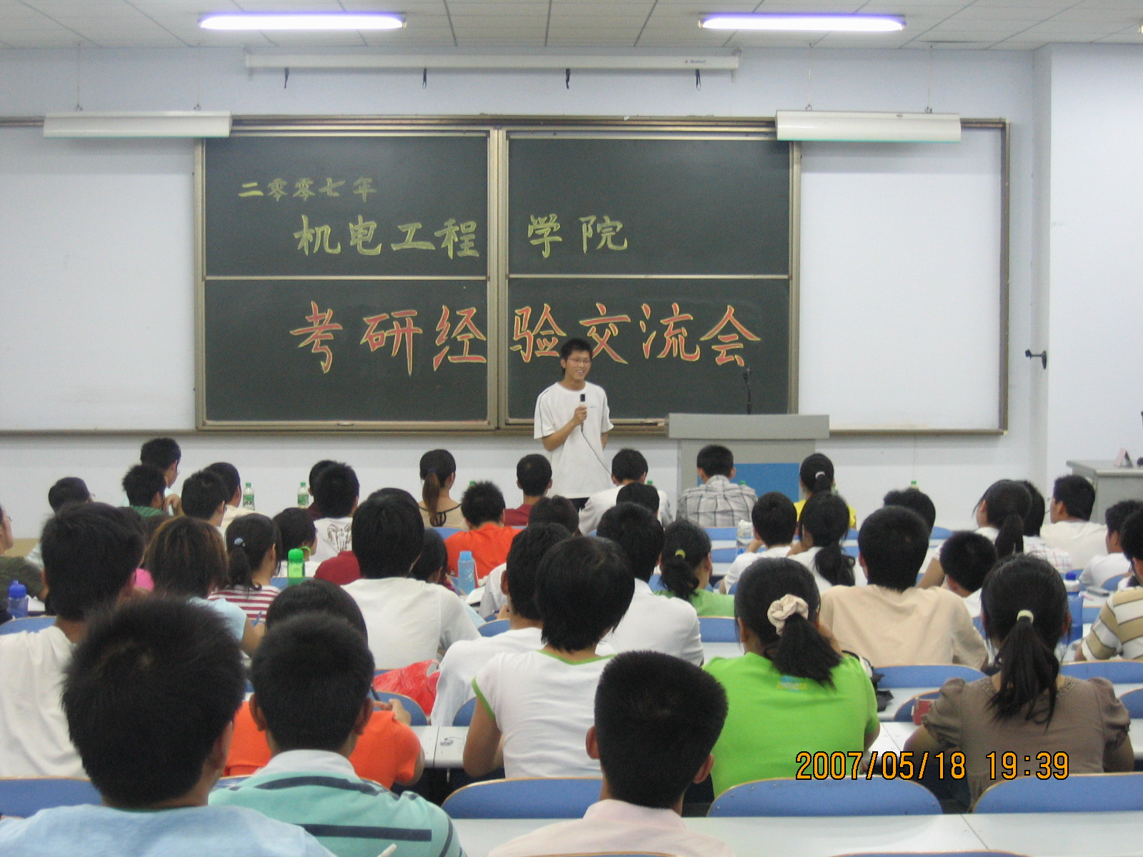 5月18日晚7:00―9:30,机电工程学院2007年考研经验交流会在教三楼205隆重举行,机电工程学院分团委书记宋德涛老师应邀出席交流会。