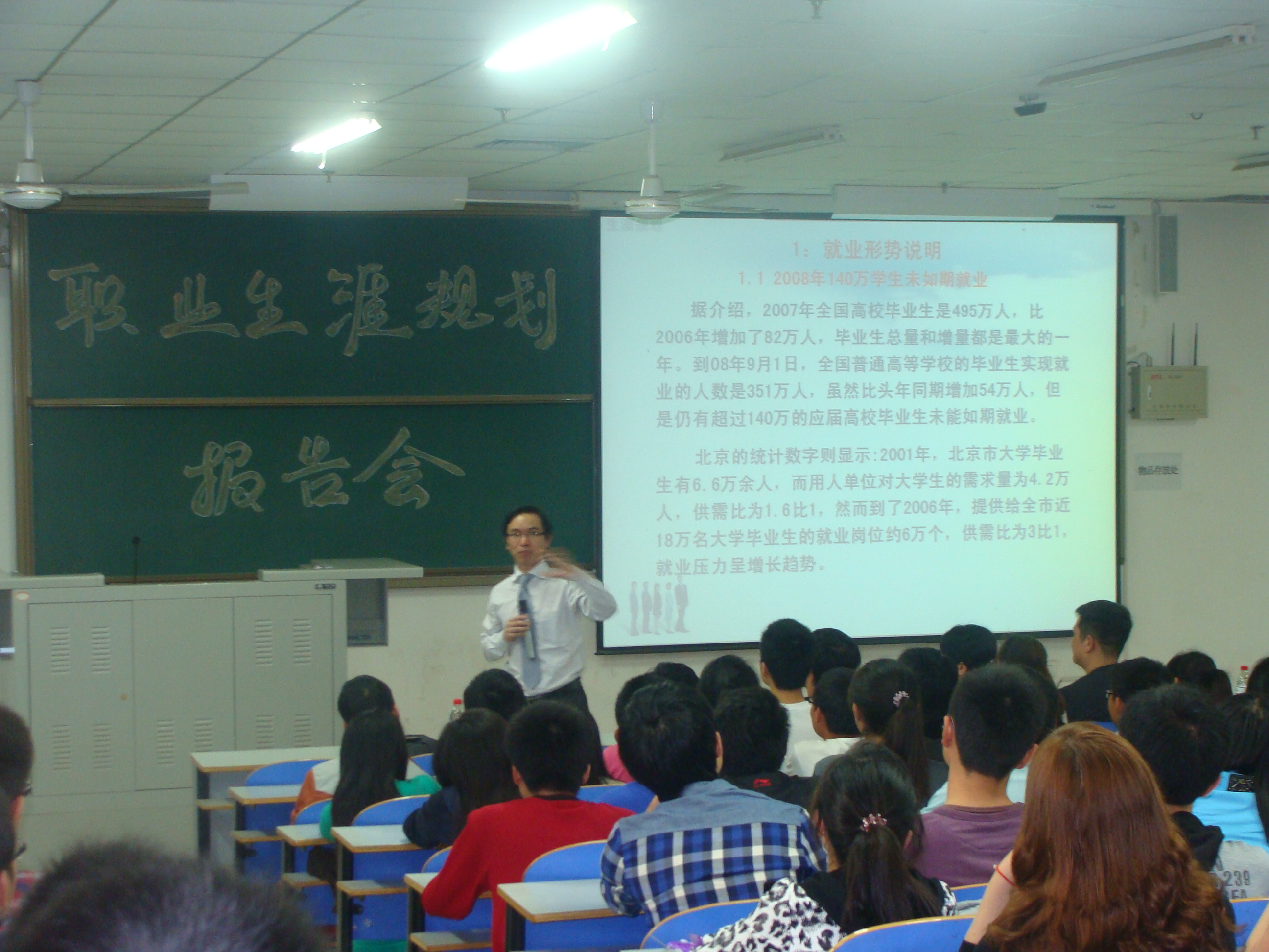 吴迪年校友从自身的职业经历讲起,就当前大学生的就业环境,当下的经济形势,以及企业对人才的要求等方面进行了阐述;告诫在校大学生要有吃苦耐劳的精神,要从点滴做起,充分利用大学四年的学习时间,全面充实、锻炼、提高自己的素质和能力,这样才会在今后的职业发展中拥有更多的机会。在交流互动环节,吴迪年校友回答了同学们关于职业生涯规划的各种问题,强调了职业规划对大学生今后发展的重要性,提醒大家及早规划个人的职业生涯,全面提升个人的综合素质。