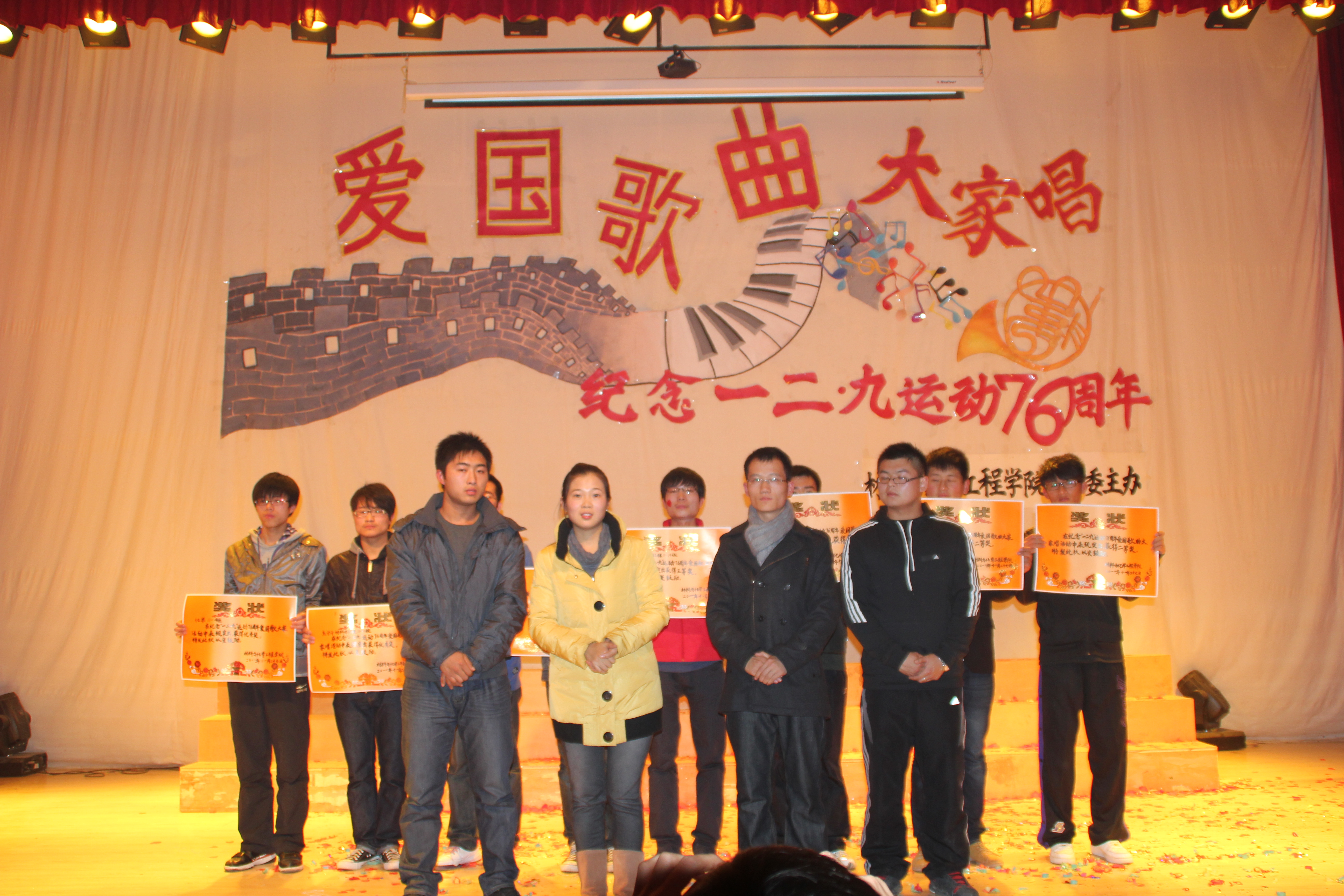 为纪念“一二・九运动”76周年,弘扬爱国主义精神,丰富校园文化生活,材料与化学工程学院于11月27日下午在科学校区电教楼208活动室成功举办“爱国歌曲大家唱”合唱比赛,我院领导和分团委、学工办老师到场观看演出。