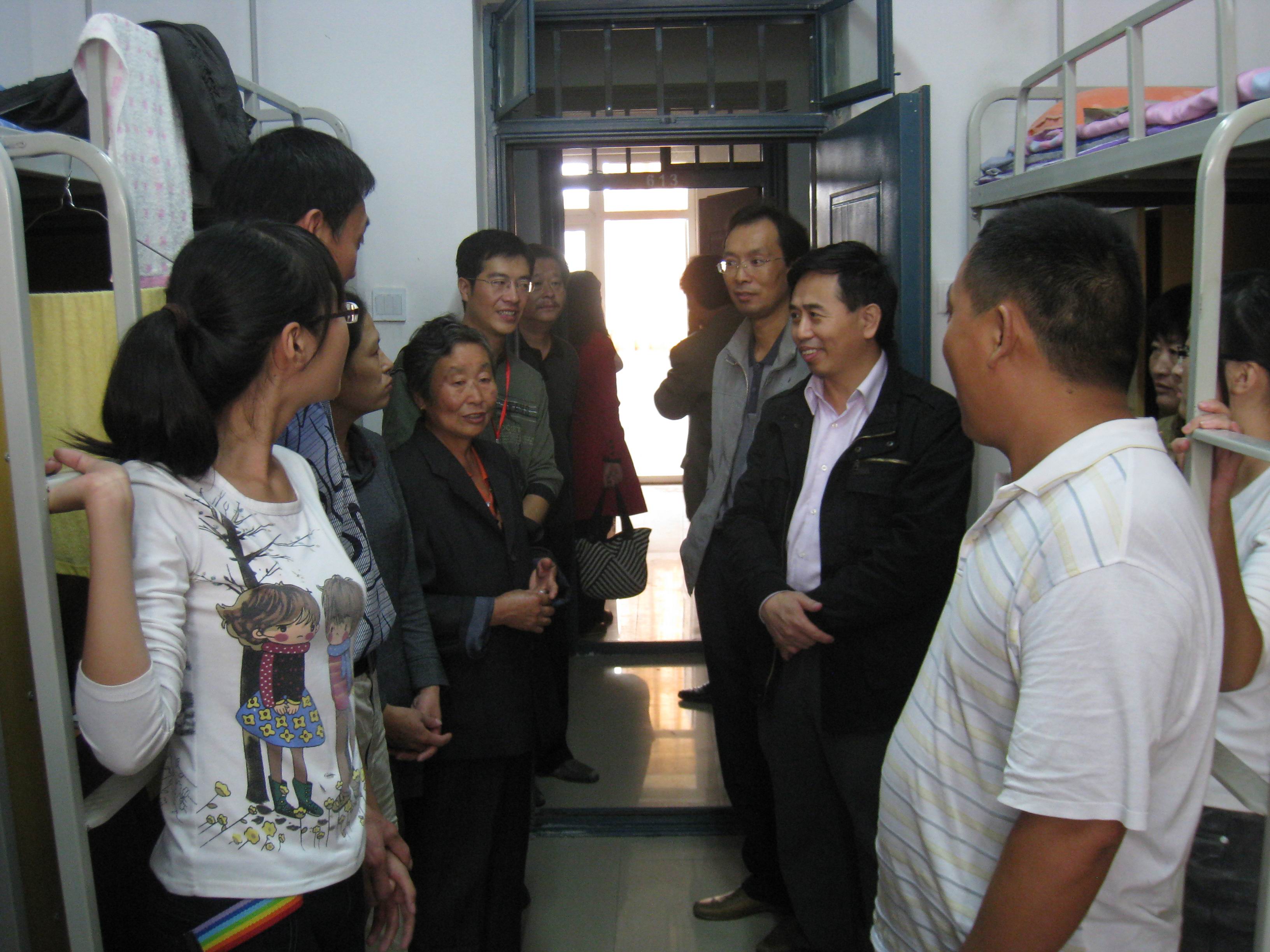 最后,方院长一行来到新生宿舍慰问新生和家长。在学生宿舍,方院长详细询问了新同学们关于新校区住宿条件的意见以及生活上的困难,详细了解了新生们的入校感受,并和学生家长进行亲切交谈,请家长们放心,我院成立了以学生辅导员和专业导师为主的学生工作队伍,会帮助广大新生尽快适应大学学习和生活,度过一个精彩充实的大学美好时光。