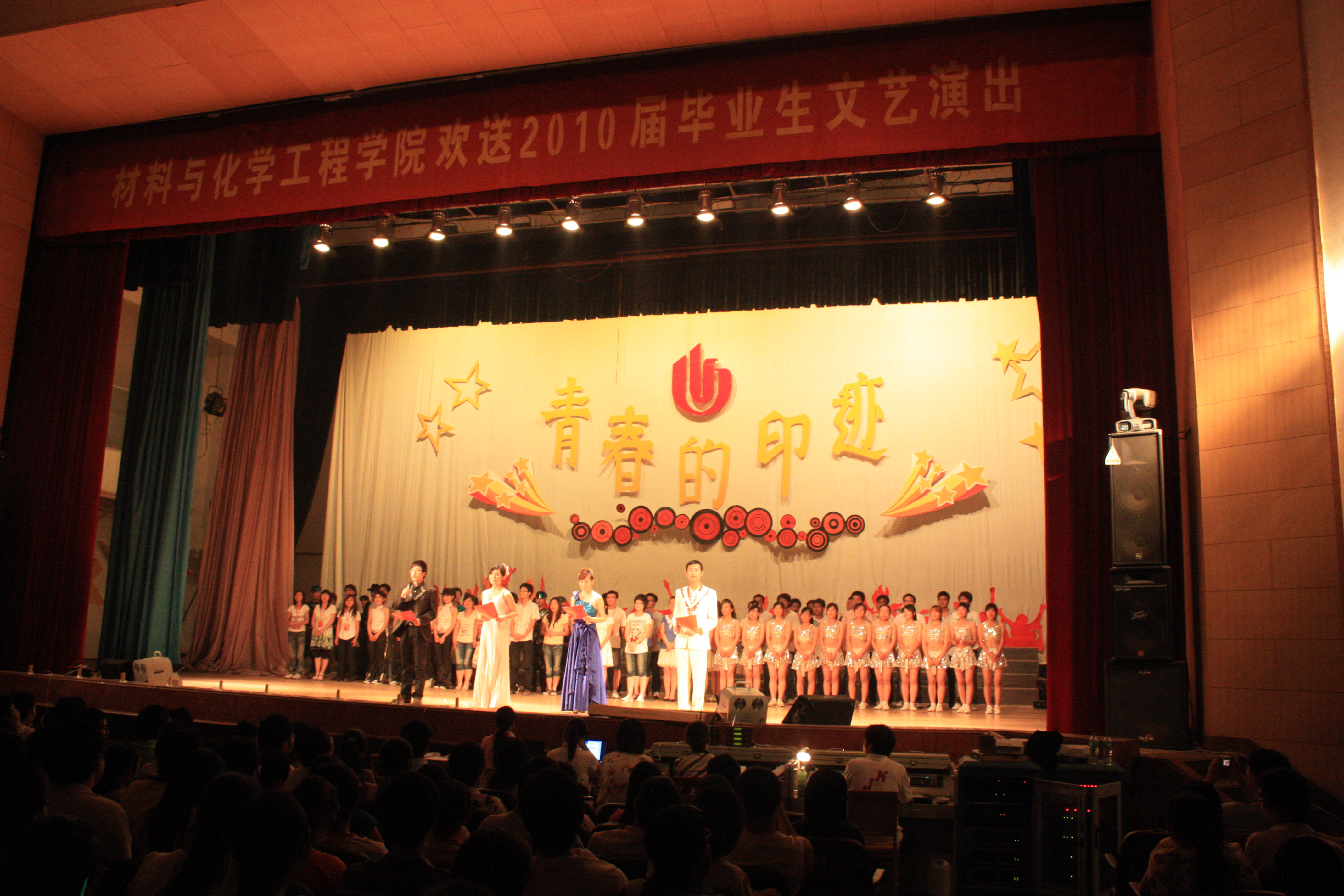 2010年6月3日晚7点,材料与化学工程学院欢送2010届毕业生文艺晚会在大礼堂隆重举行。材料与化学工程学院党政领导、辅导员老师及部分教师参加了晚会。
