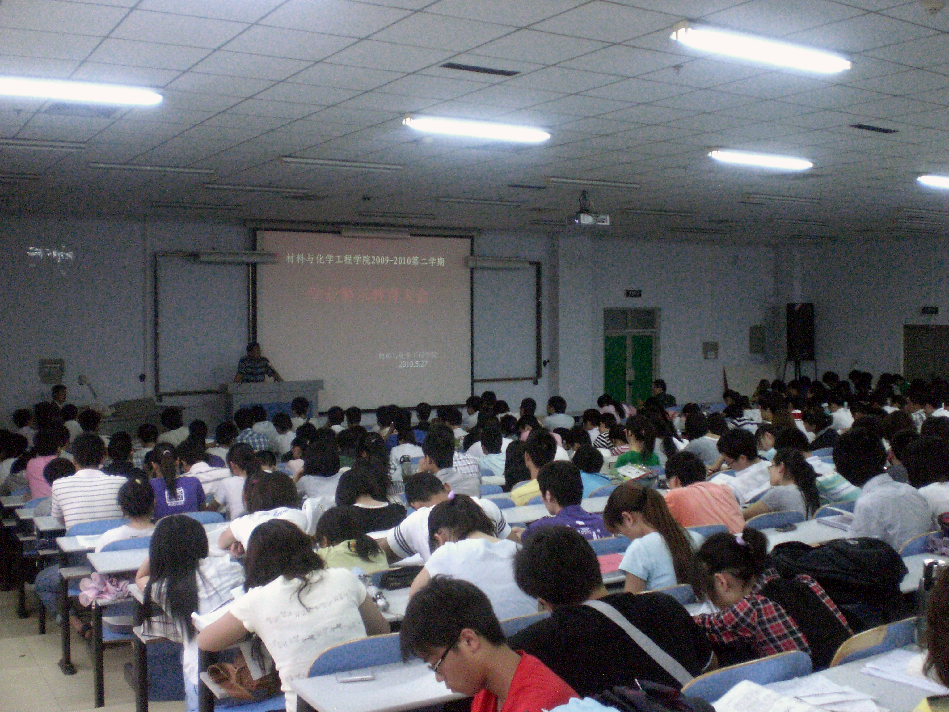 为了督促学生端正学习态度,按期完成学业,提醒他们合理规划大学四年学习生活,营造良好的学习氛围,材料与化学工程学院于2010年5月27日下午在教三楼302召开了我院第四次学业警示教育大会。尹志刚副院长、周立明副书记、全体专兼职辅导员老师和受警示的学生以及2007、2008级全体学生近600余人参加了此次大会。