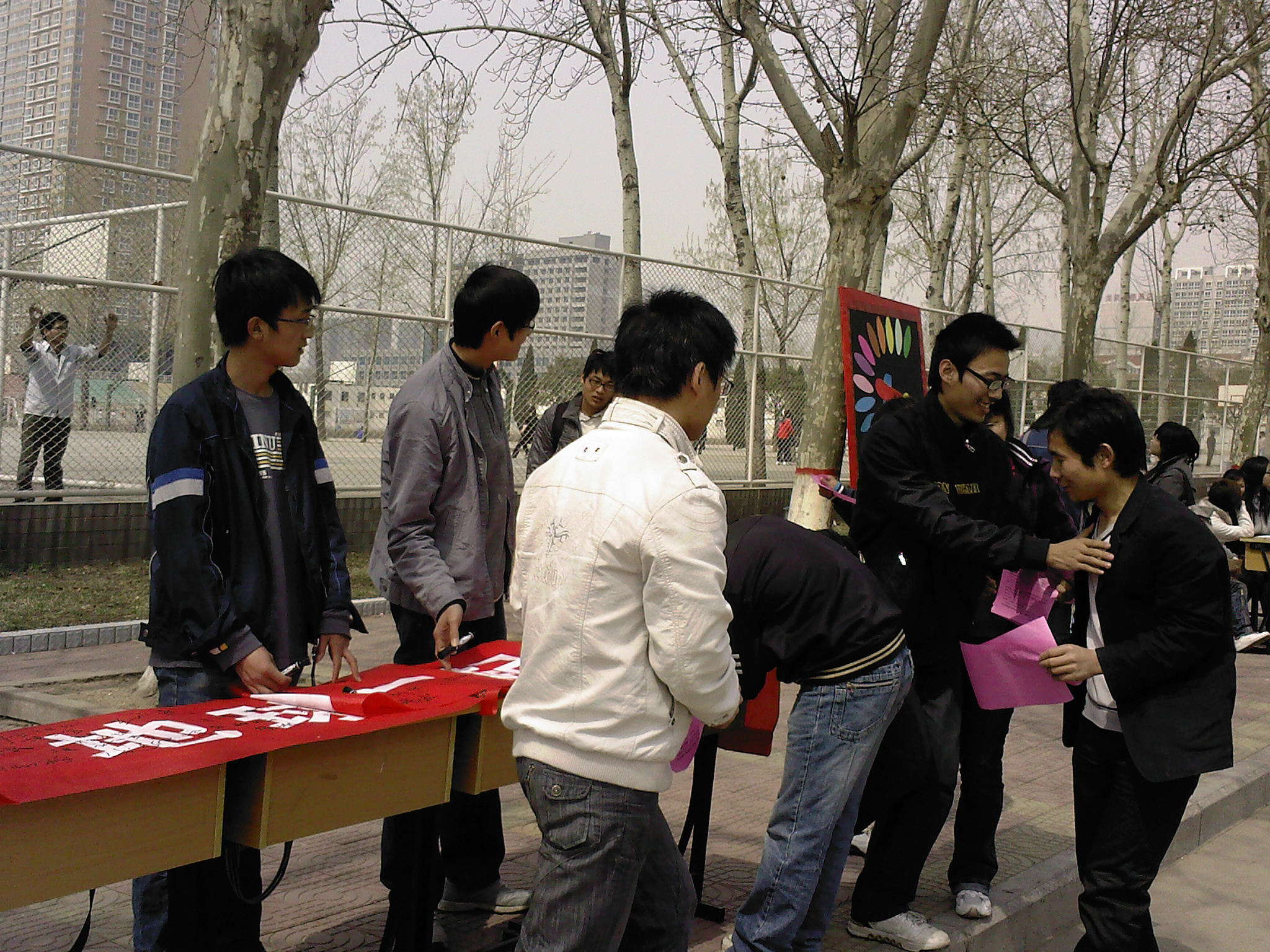 关爱地球,为明天祈福。材料与化学工程学院环保协会开展了“地球一小时”宣传签名活动。号召同学们在27日晚熄灯一小时,响应全球号召,节约资源,为地球减负。