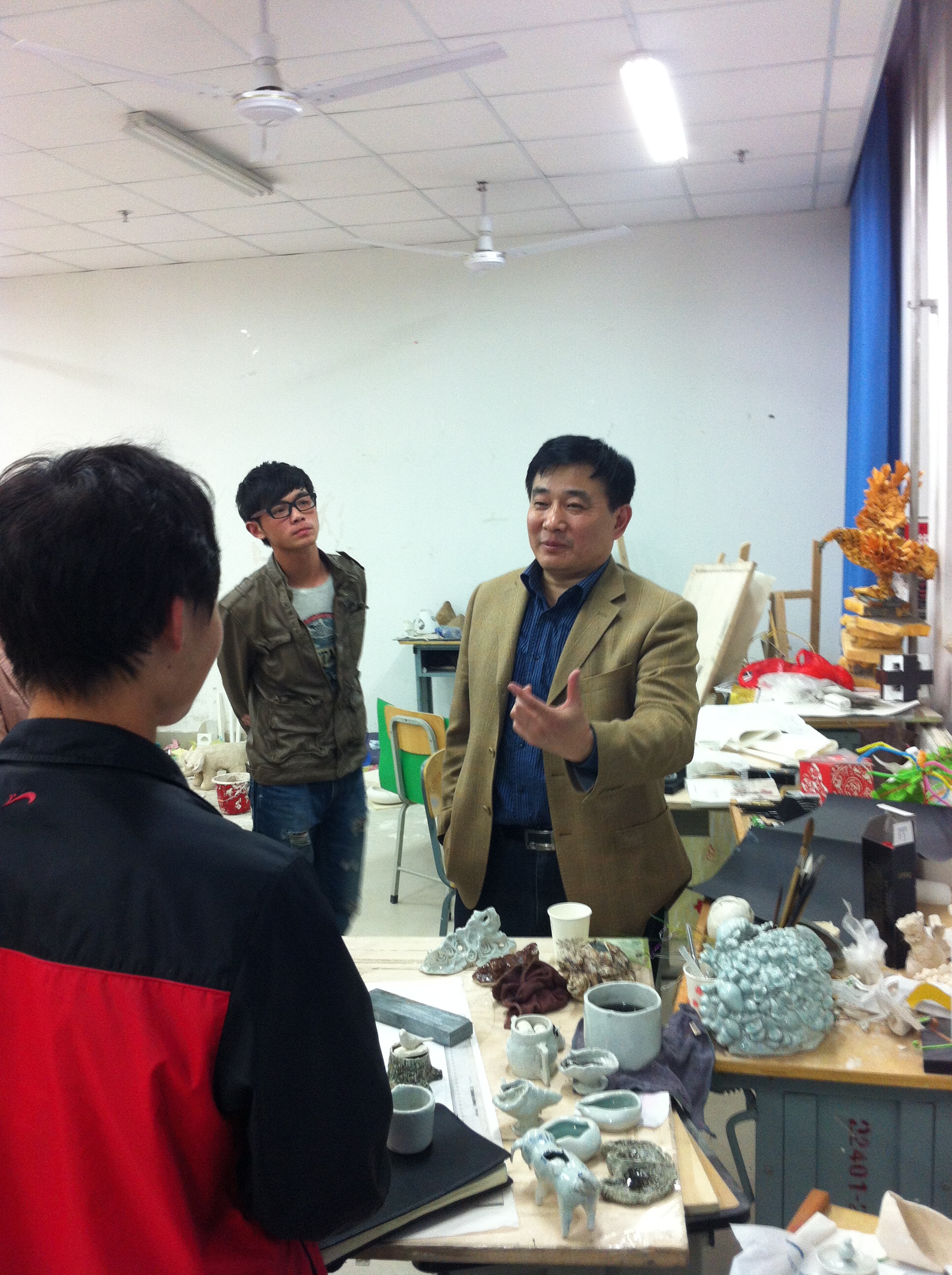 座谈会后,任院长还兴致勃勃的参观了同学们的作品,鼓励同学努力学习,多向大师学习、多出精品。