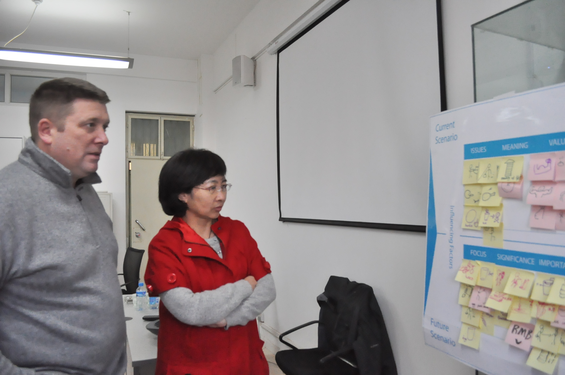 活动中,西蒙博尔顿教授首先为郑州轻工业学院师生作了题为“Decoding Visual Thinking”(解码视觉思维)的讲座。西蒙博尔顿教授以其丰富的设计实践经验深入浅出地介绍了视觉思维对于创新设计的重要意义和视觉思维的主要方法。他谈到“设计师和设计公司常常为设计过程和设计价值的不确定性而感到困惑。这往往是因为设计程序在被启动的时候没有一个‘正确的开始’。”“创造性的视觉思维可以引导设计师思考正确的问题,并通过视觉思维工具推动设计一步步实现成功。”在接下来的设计实践中,西蒙博尔顿教授通过一系列游戏一般的练习,引导大家认识思维的差异,学会以视觉方式呈现思维。最后以“Street Food”为主题,运用视觉思维的工具,如Timeline,5WH等,以“ISSUE”,“MEANING”,“VALUE”,“FUCOS”,“SIGNIFICANCE”,“IMPORTANCE”,“TAGET”等关键词为主线,分析现状,设想未来,提出设计方案。此次活动颠覆了大家的常规思维,引导大家发现视觉思维的独特价值,促使大家的关注点从“做设计”转变为 “做对的设计”。同时也启发了大家对设计研究和设计研究模型的关注与反思。