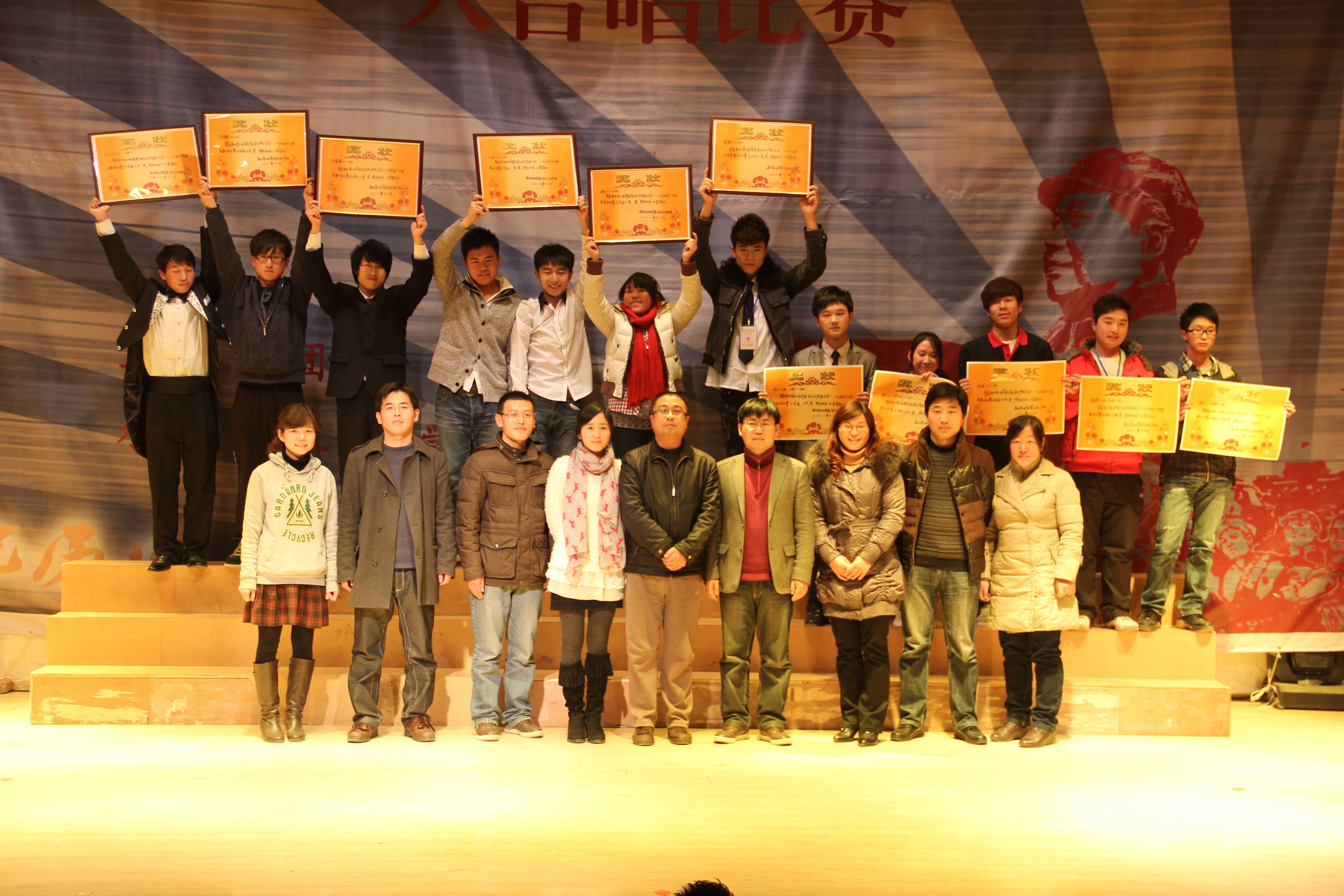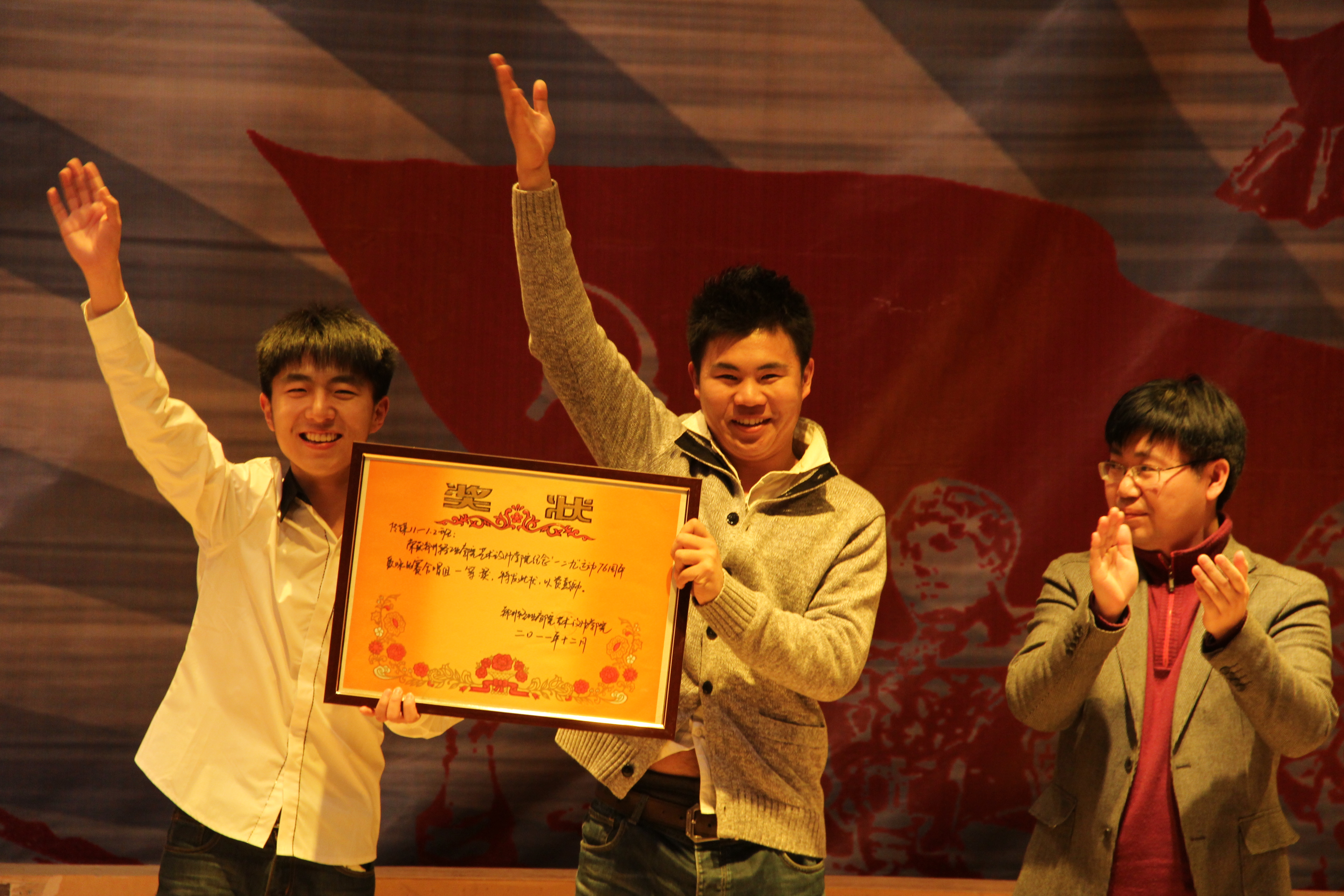 本次比赛一等奖由传媒代表队获得,二等奖由环艺代表队与装潢代表队获得,三等奖由JD传媒代表队、JD装潢代表队和JD工设获得,最后,在热烈的掌声中,出席的领导老师为获奖代表对颁奖,大合唱比赛圆满结束。