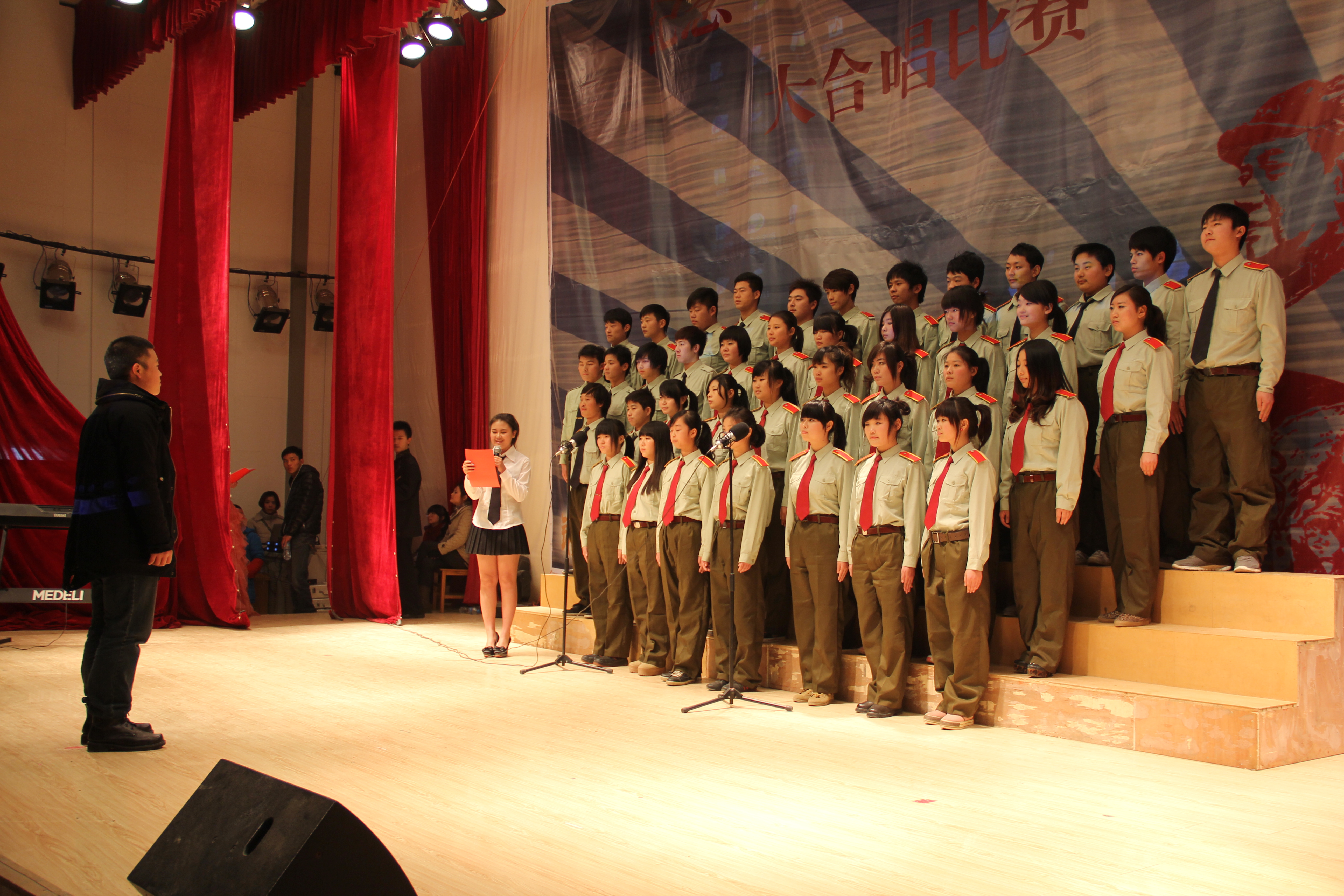 比赛中,同学们队形整齐,着装统一,上下场秩序井然,会场始终洋溢着优美的旋律,整个合唱指挥配合默契,声音宏亮统一,极富感染力,展现了我院青年学子积极向上的精神风貌,表达了同学们对大学生活的挚爱和热情向往。通过歌咏比赛不仅极大地调动了学生的参赛热情,充分表达了新生对祖国的祝福,还培养了学生的团队精神和集体荣誉感,对我院学生工作的顺利开展起到了积极的推动作用。