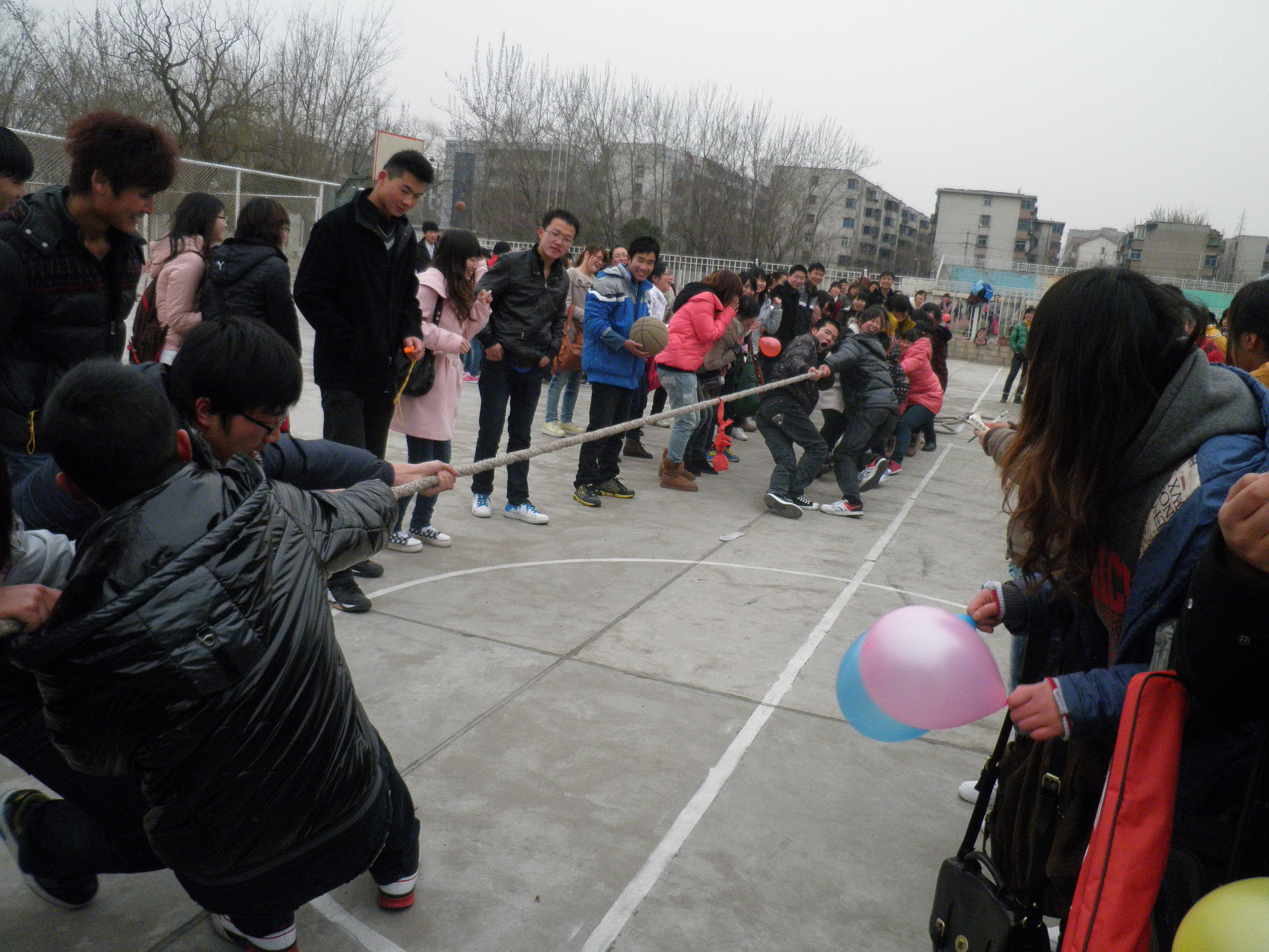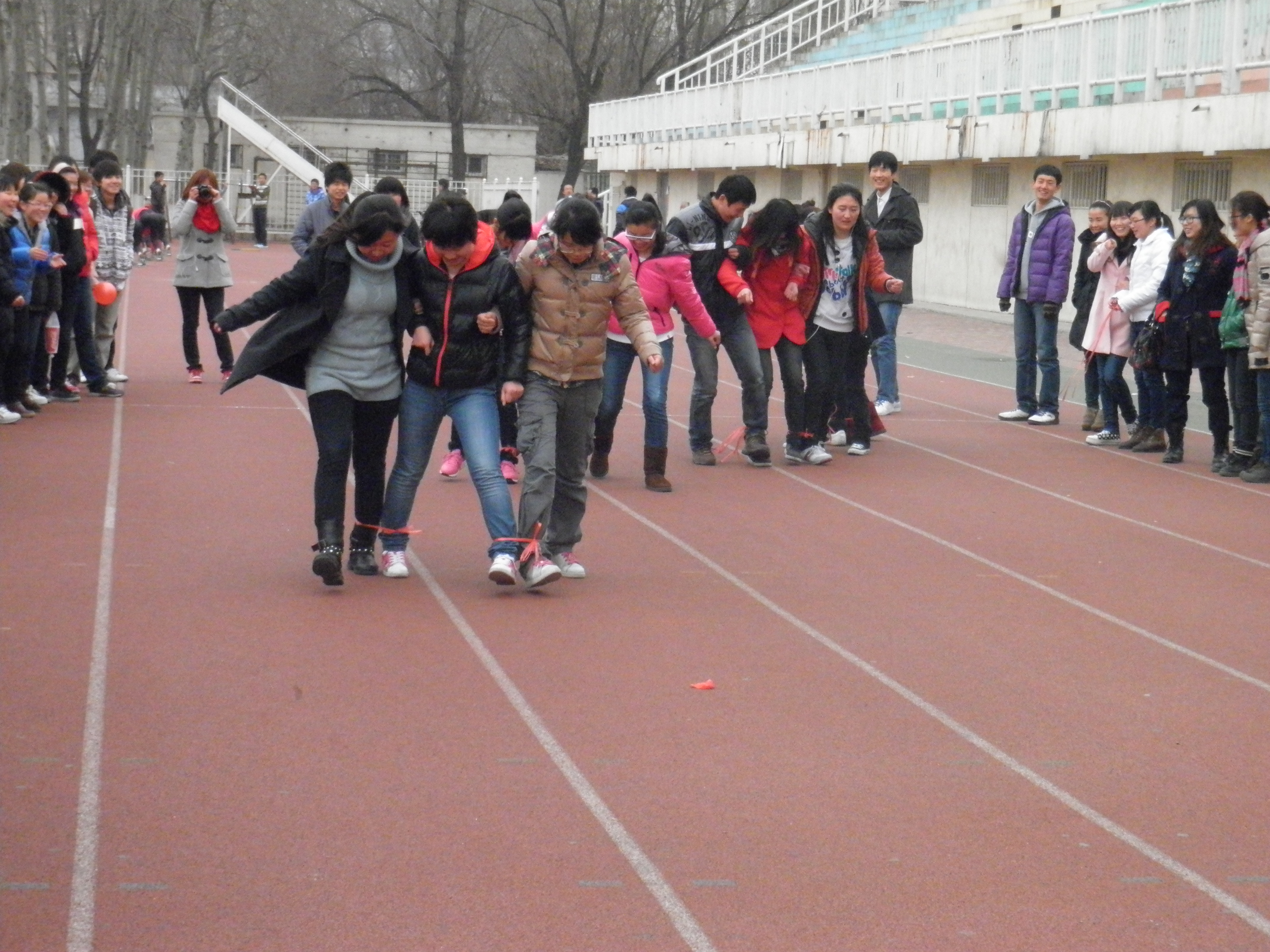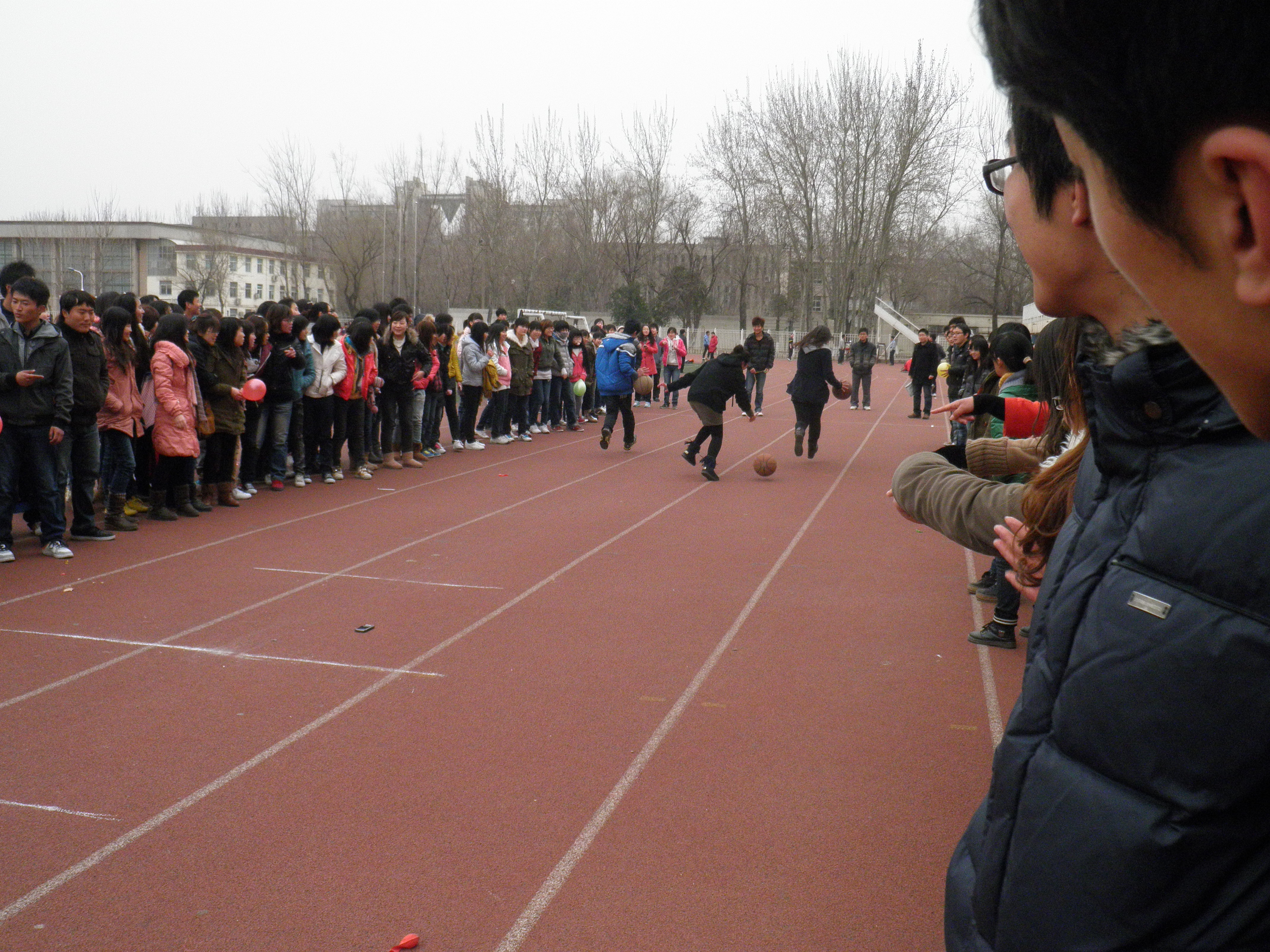 为庆祝女生节的到来,丰富同学们的课余生活,外语系举办了“快乐女生节”趣味运动会。三人四足,男女生篮球接力,背靠背运气球,拔河比赛等项目娱乐性强,趣味十足。比赛中,女生们精彩的表现更是赢得了同学们热烈的掌声和欢呼声。激烈的对抗和同学们团结拼搏的精神,使现场气氛热烈,高潮迭起。“两人三足”、“背对背”等趣味活动也给广大女生带去无尽的欢乐。经过激烈角逐,英语11-2班代表队获得拔河比赛冠军,朝鲜语10-2班获得趣味类项目冠军。