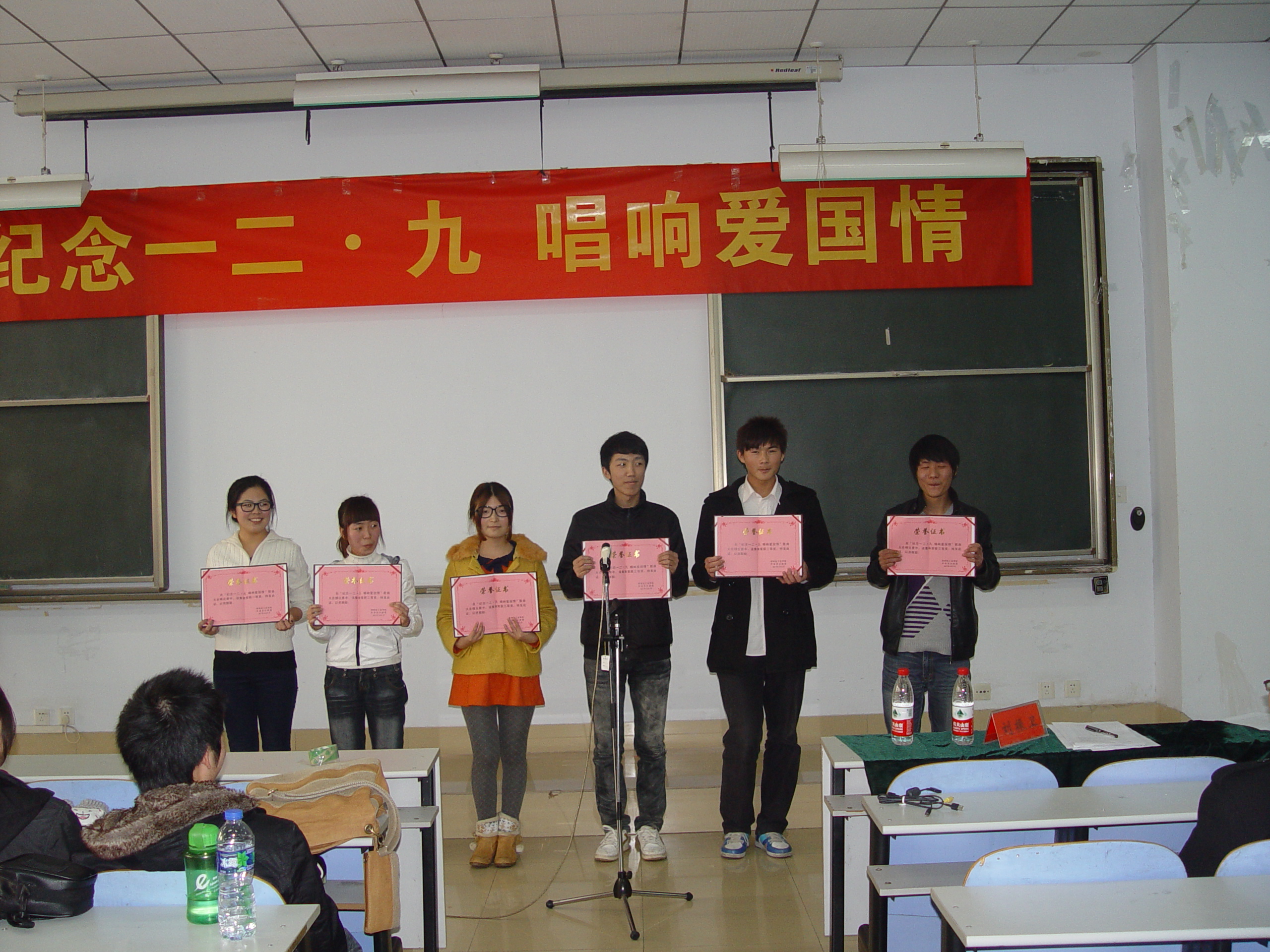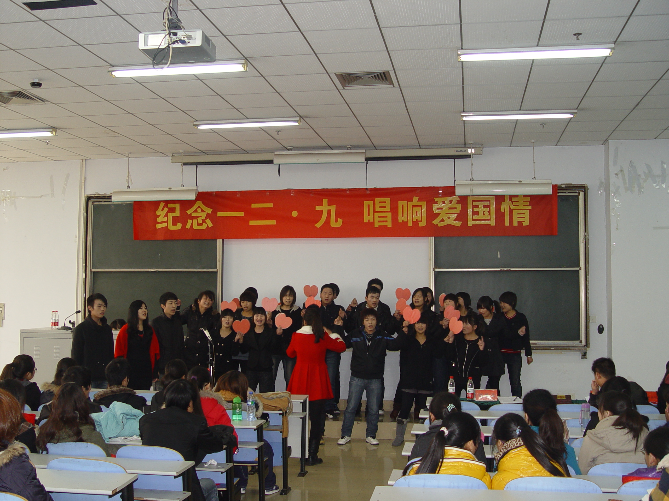 为纪念一二.九运动七十六周年,传承“12.9”精神,抒发爱国主义情怀,12月1日下午2:00,外语系在教三楼302举办了“纪念 一二.九,唱响爱国情”的爱国歌曲合唱比赛。10、11级以班级为单位参加了合唱比赛。