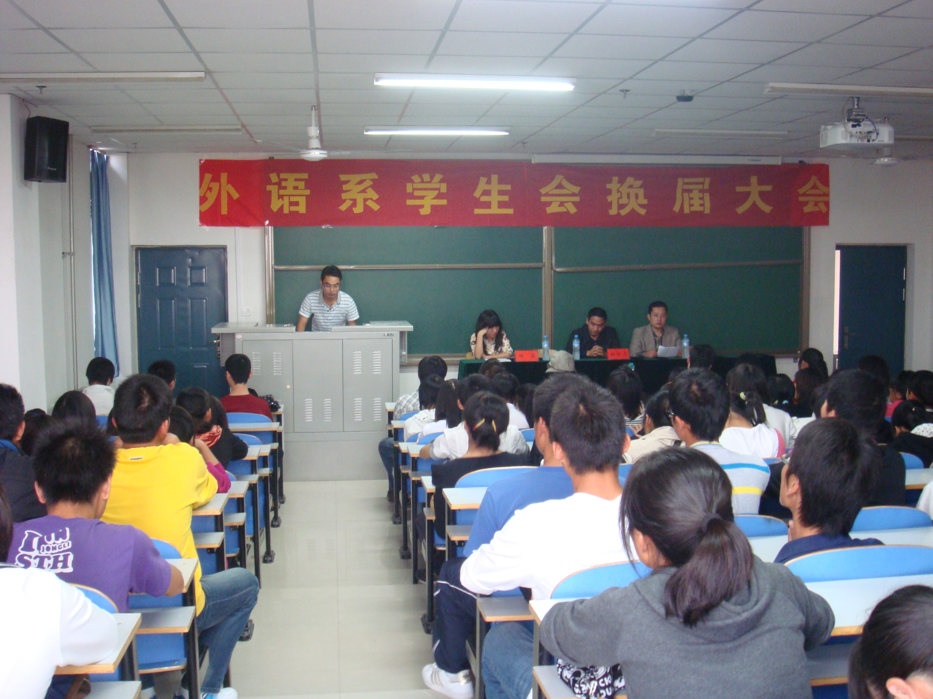 10月14日下午14:30,外语系在科学校区主教楼217教室召开学生会换届大会。系党总支副书记杜红亮老师、分团委老师、学生会全体成员参加了会议。