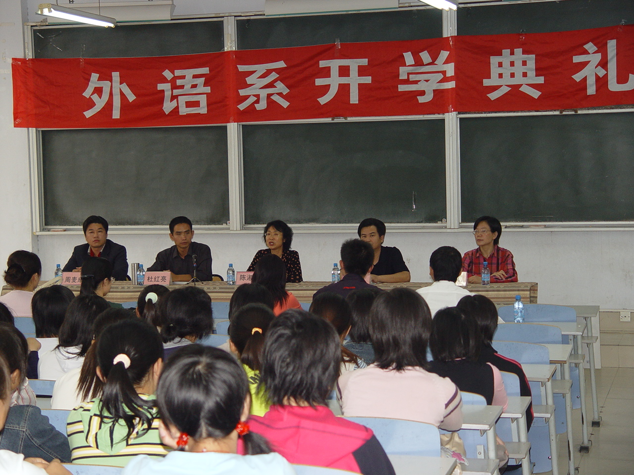 9月28日下午,外语系在东一楼218召开2006级新生开学典礼。外语系党政领导及专业教研室、朝鲜语教研室的部分老师参加了典礼。