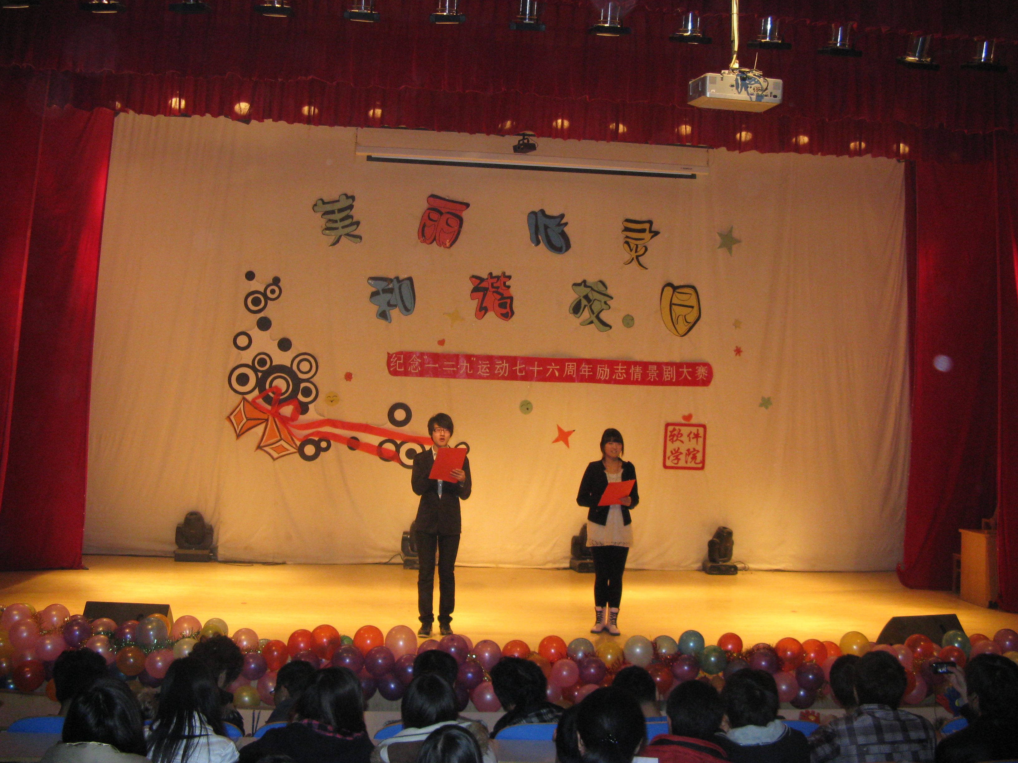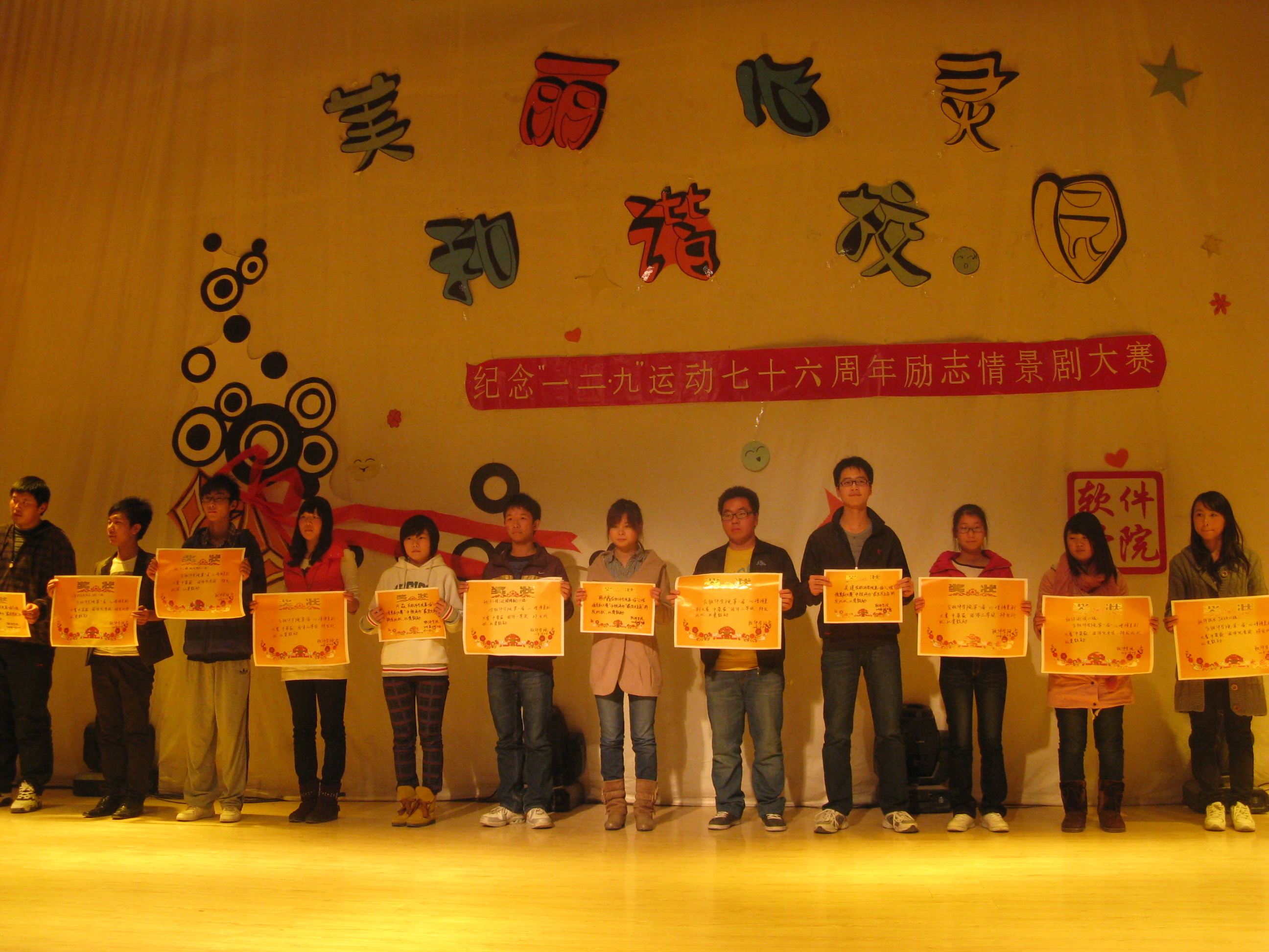 为弘扬“一二・九”运动的爱国主义精神,增强当代大学生的历史使命感, 11月20日晚上,软件学院在科学校区电教楼208举办了以“美丽心灵,和谐校园”为主题的纪念“一二・九”运动76周年励志心理情景剧大赛。
