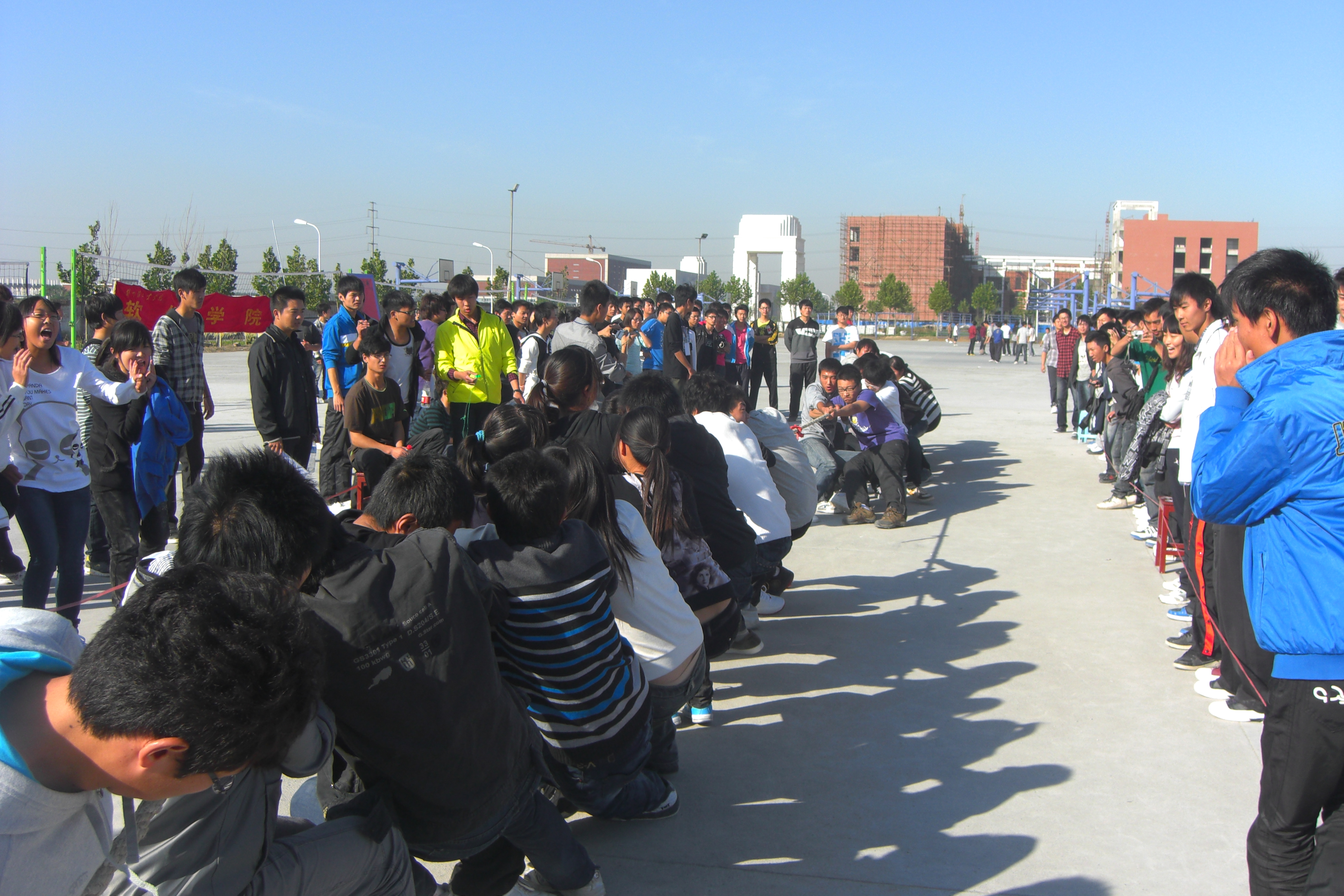 为进一步加强新生间的交流与沟通,培养体育锻炼的自觉性,促进新生尽快融入大学生活,10月16日上午,软件学院在科学校区篮球场举办了“新生杯”男女混合拔河比赛。软件学院2011级新生班级共16个队伍参加了本次比赛。