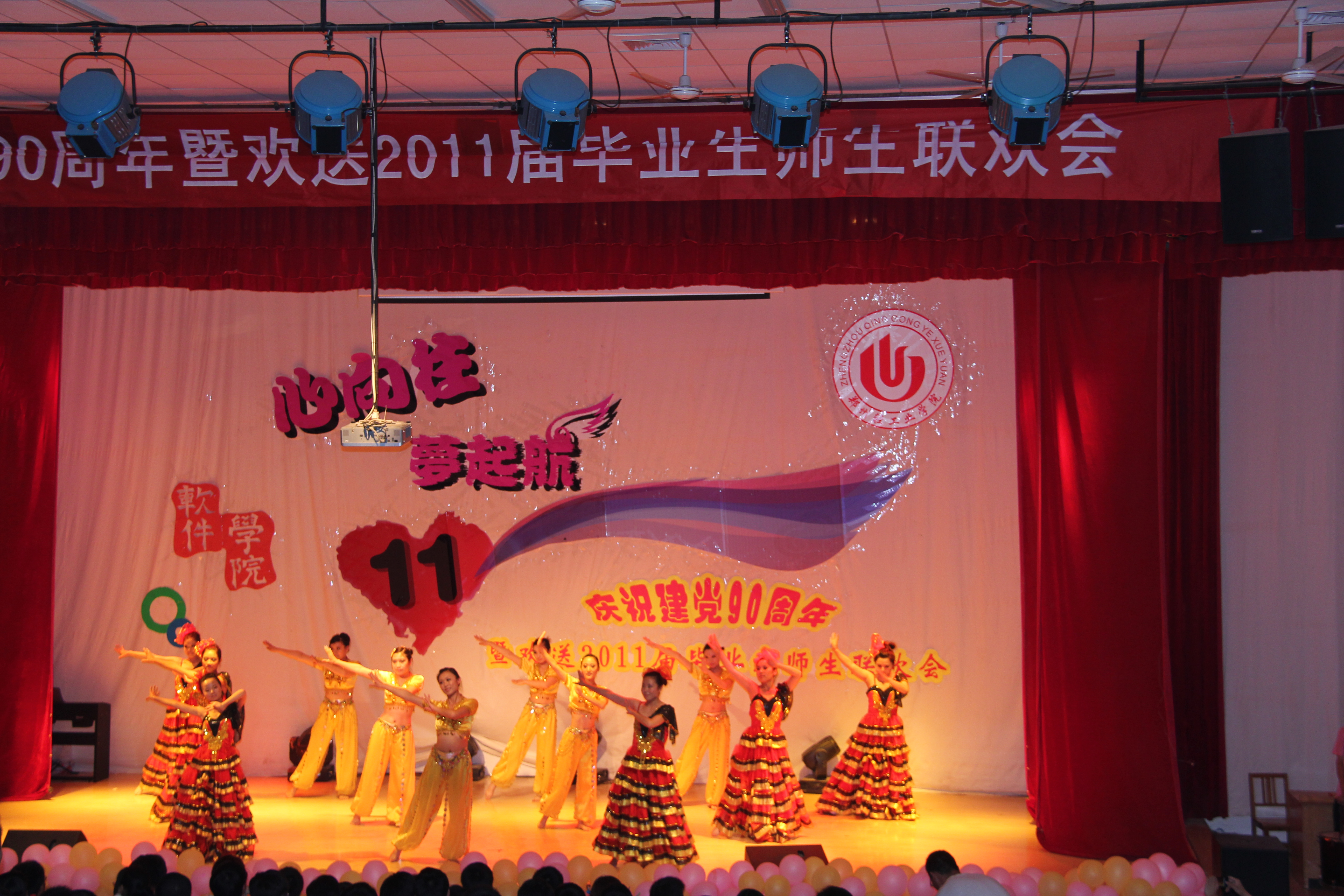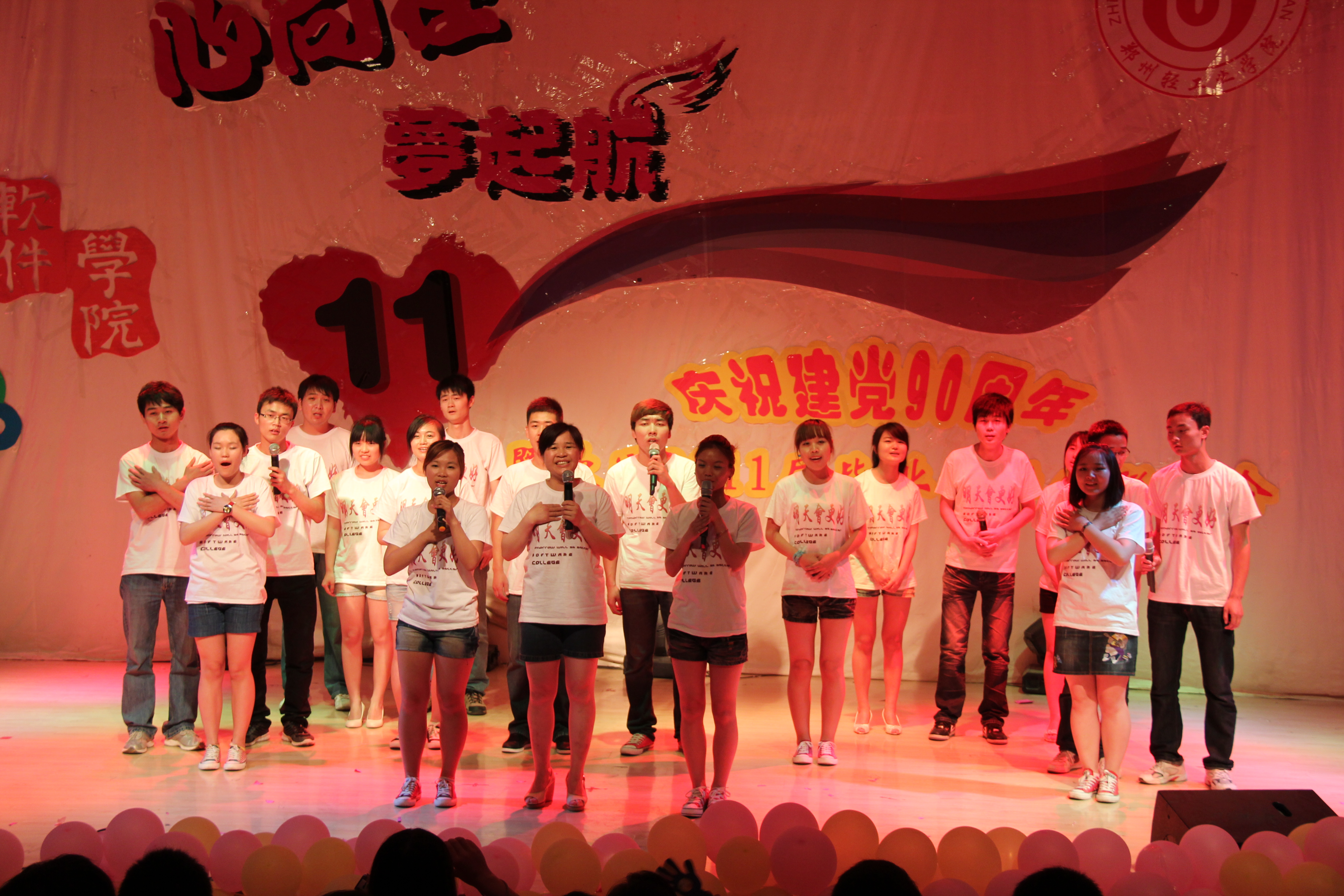 随后,演出正式拉开帷幕。演出精彩纷呈,高潮迭起,节目形式多样,内容丰富,尽情讴歌了九十年来中国共产党取得的伟大成就,表达了对2011届毕业生的依依不舍之情。配乐朗诵声情并茂,街舞和健美操动感十足,小品和相声诙谐幽默,舞蹈和歌曲激情飞扬,话剧感人至深……一曲由邓璐娟老师和毕业生代表合唱的《明天会更好》点燃了全场师生的热情,现场的毕业生们齐声合唱,气氛感人。最后,联欢会在合唱《难说再见》中圆满落下帷幕。