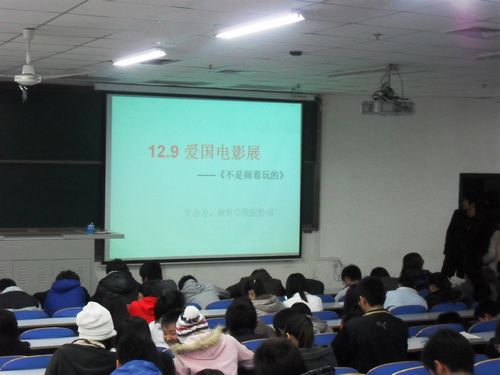为进一步加强爱国主义教育,铭记历史,缅怀革命前辈,软件学院于12月2日分别在科学校区电教楼108和109教室举行了纪念“一二•九”爱国电影展,播出爱国影片――《精武风云》和《不是闹着玩的》。