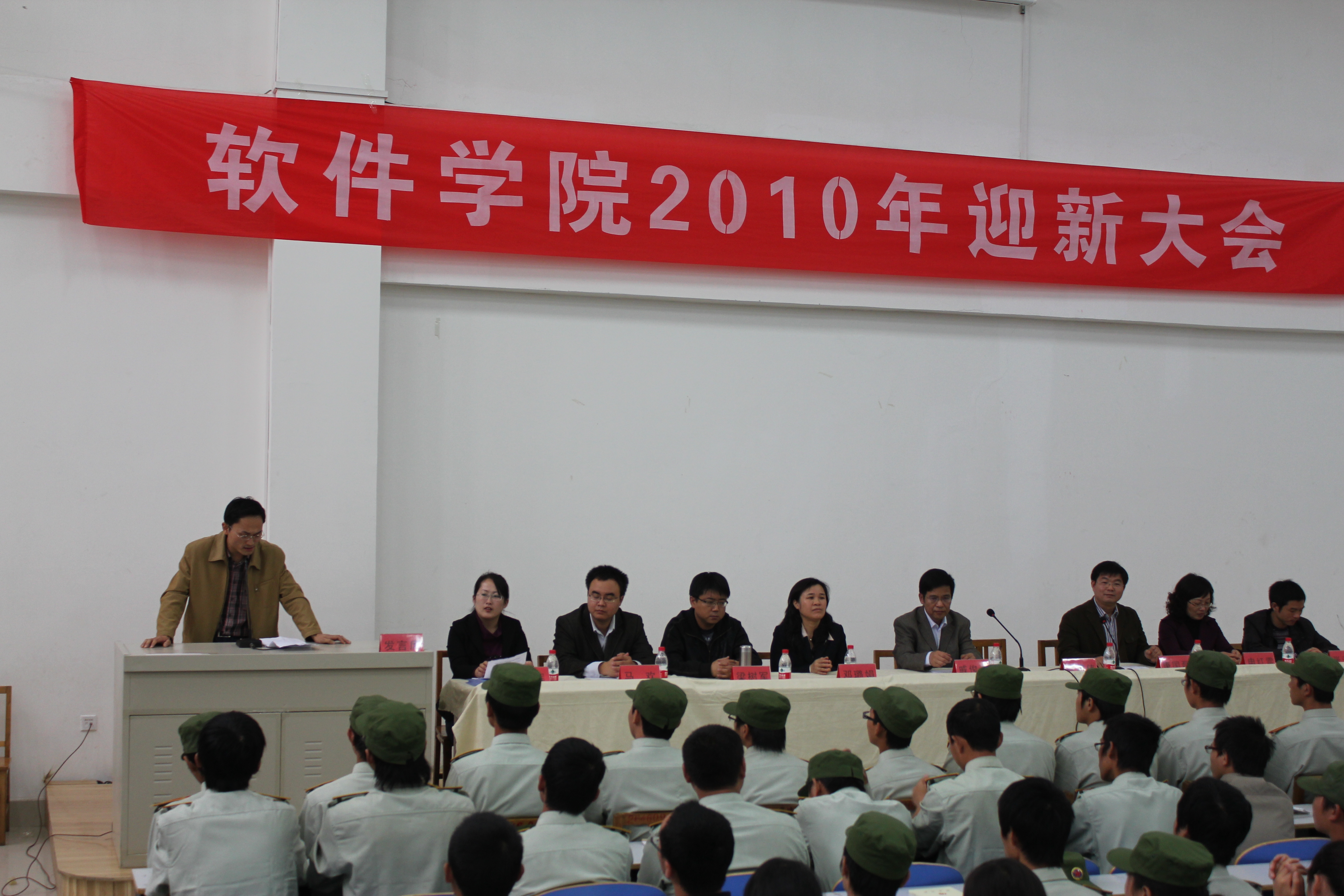 2010年9月29日上午,软件学院2010年迎新大会在科学校区电教楼408隆重召开,全体学院领导、辅导员和2010级全体学生参加了迎新大会。会议由党总支副书记康国磊老师主持。