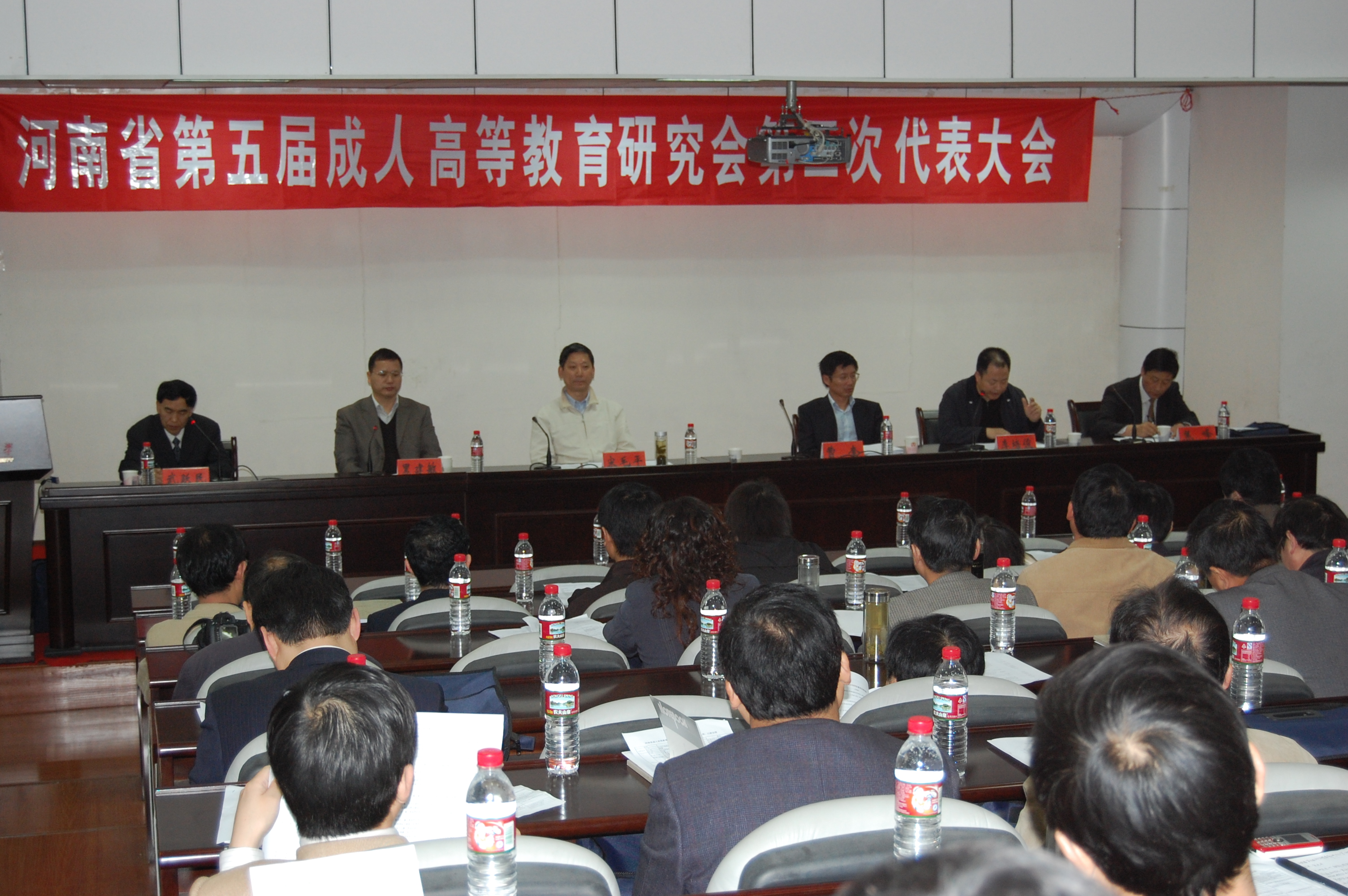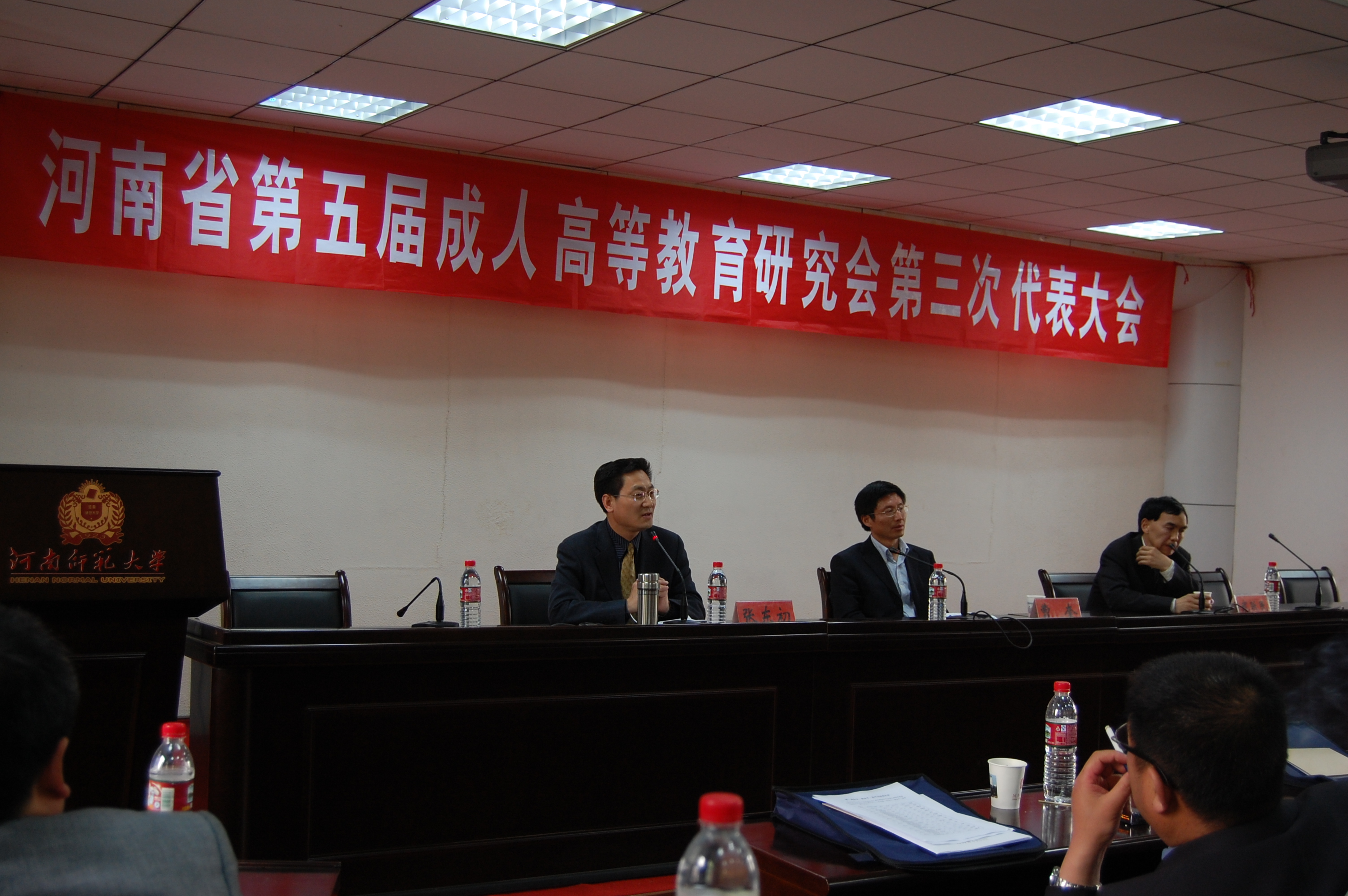 本次会议的主题是:中原崛起与成人教育改革与发展。大会开幕式由郑州大学成人教育学院武跃民院长主持,换届选举由河南大学成人教育学院焦峰院长主持。河南省教育厅高教处李培俊副处长、第五届河南省成人高等教育研究会会长、郑州大学副校长宋毛平教授、新当选的第六届河南省成人高等教育研究会会长、河南大学副校长曹奎教授、主办单位河南师范大学副校长黑建敏博士出席了大会。本次会议的重要内容之一是换届选举工作,我校当选为新一届研究会副会长单位,充分体现了我校成人教育事业发展在全省高校的地位和影响力。