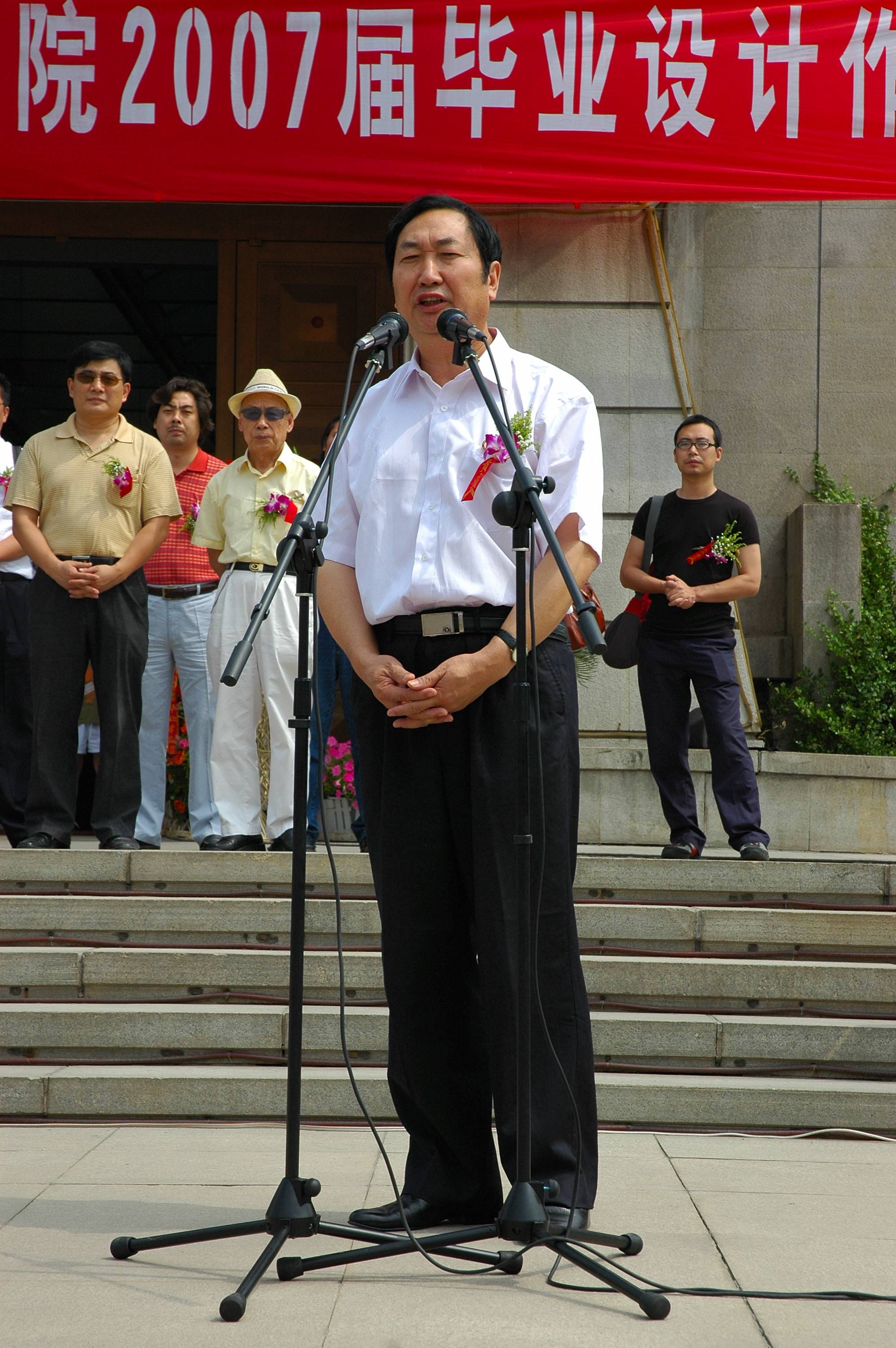 开幕式结束后,剧校长在扈涛院长和工作人员的陪同下认真地参观了展览作品,对该院2007届毕业生作品展给予了较高的评价,并题词“博采众长,凝铸特色”。