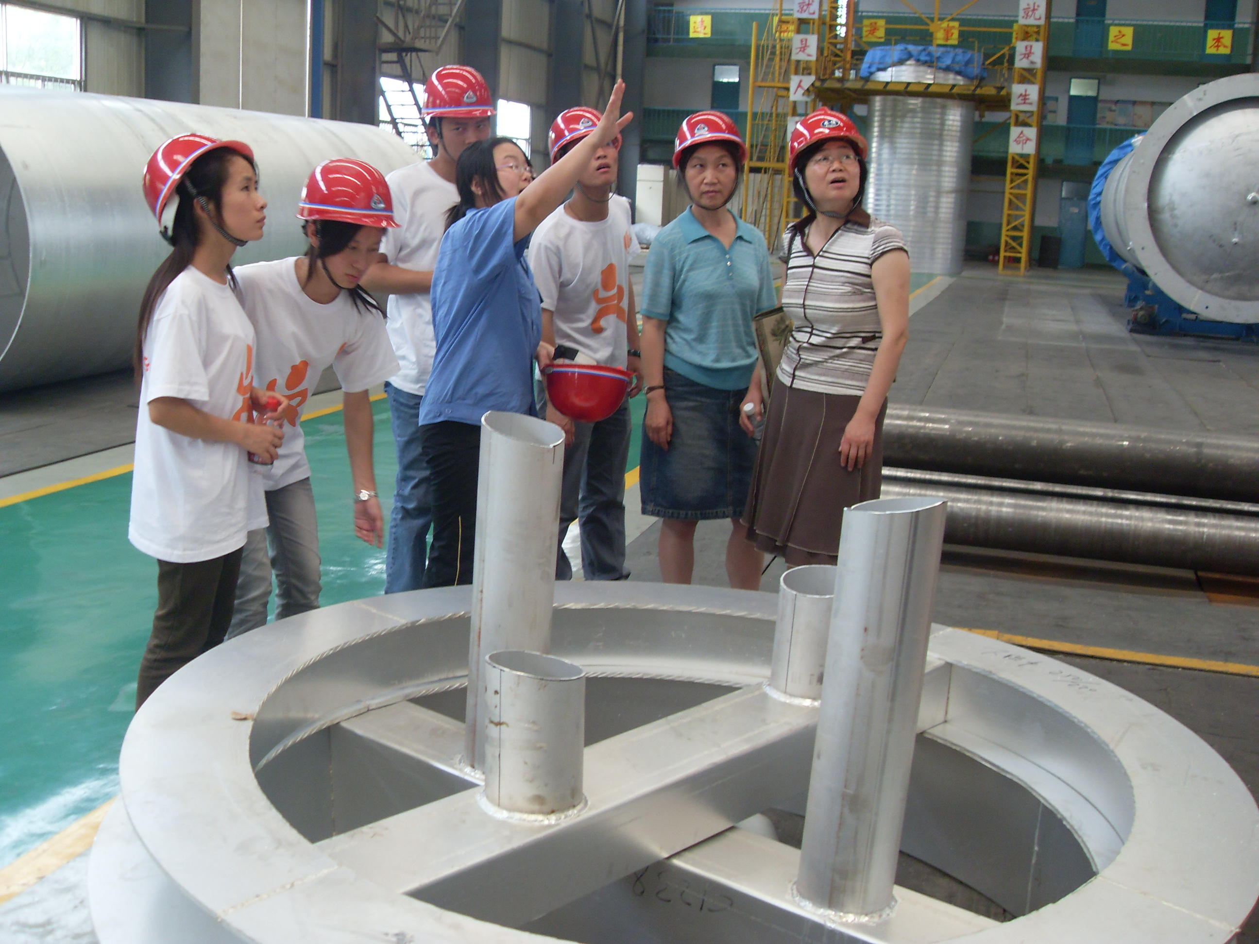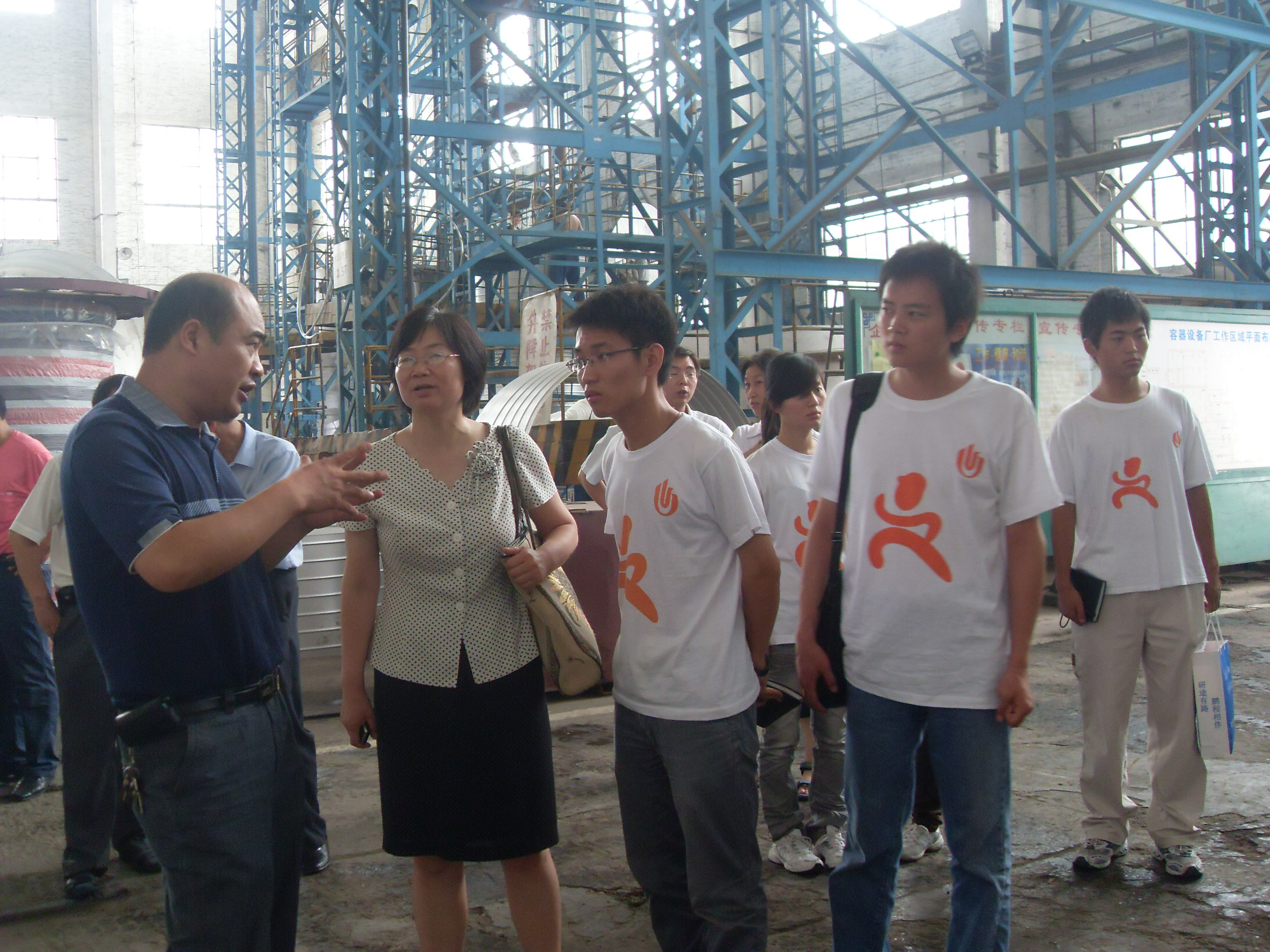 上午小分队一行8人在机电工程学院党总支副书记邵建敏老师的带领下来到了河南开元空分集团有限责任公司,受到了公司领导和员工的热情接待。上午,在相关负责人的带领下,队员们参观了公司厂区,负责人向队员们全面介绍了公司的概况及发展历史,并就车间的工作环境和规章制度做了介绍。中午,公司内的校友借着休息的时间与队员们进行了亲切的座谈。队员们了解了他们的工作情况,并就学校学习的专业知识与社会实际的需要是否存在差异做了询问。校友对大家提出的问题进行耐心细致回答的同时,还语重心长地嘱咐队员们要珍惜暑期社会实践,在实践中不断锻炼自己,努力提高学习技能,早日成为企业发展所需要的综合型人才。