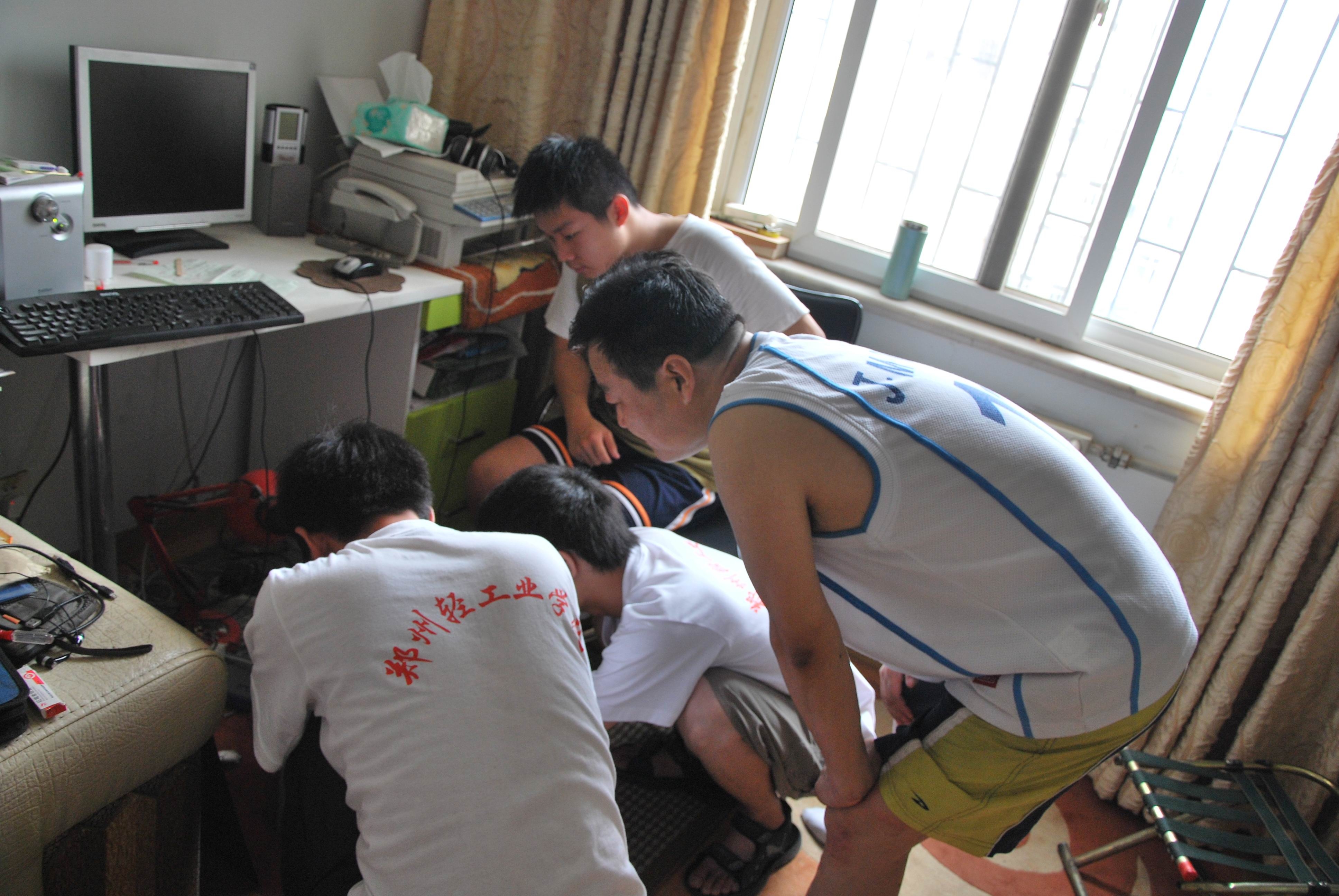 7月5日上午8点,小分队所有队员抵达郑州轻工业学院家属院,继续进行电脑义务维修服务。正午时分,三名队员顶着炎炎烈日,带着工具上门为一位老师维修电脑主机,经过一个多小时的努力,还是未能解决问题。最后,小分队的副主任吴柯亲自前往指导。大家齐心协力,不畏困难,攻克了一个个难关,最终解决了这个棘手的问题。