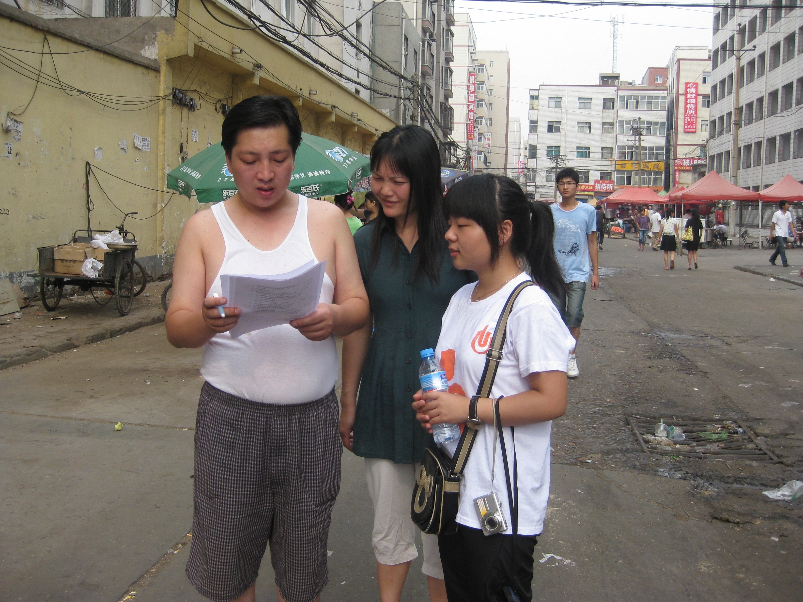 随后,队员们又到了小铺、姜砦、陈砦、陈家村进行调查。所调查的300名对象中有供职于不同企业的各阶层职员,从事个体经营的商业户,在街头道边摆摊打拼的流动商贩,工地、厂房中的普通劳工、技工以及刚踏入社会的青年等。这些形形色色的人群对队员们的调查也持有不同的态度。在陈家村调查时,那里的年轻人听说调查的内容是关于城中村文化建设的,都争先恐后填写调查问卷,提出很多关于城中村建设的问题。当然,也不乏一些反应敏感的群众对同学们的调查表示怀疑和抵触。但是,这些困难并没有阻止队员们的热情和干劲。