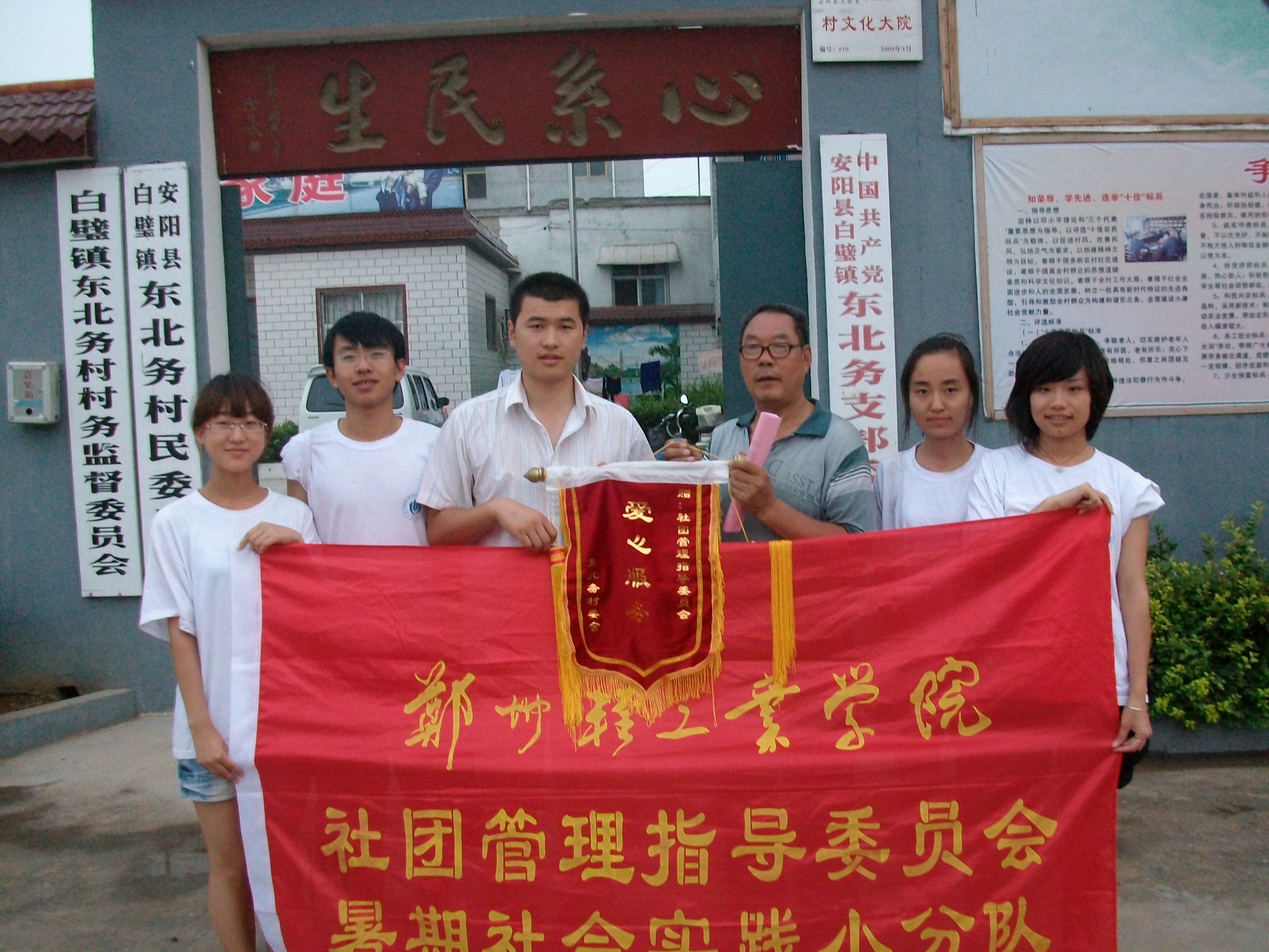 为响应团组织的号召,进一步了解农村的精神文明建设状况,支持新农村建设项目的发展,我校由社团管理指导委员会、和谐社会研究会组建的“乡村文明建设调研”小分队于7月11日前往安阳市安阳县开展调研宣讲活动。