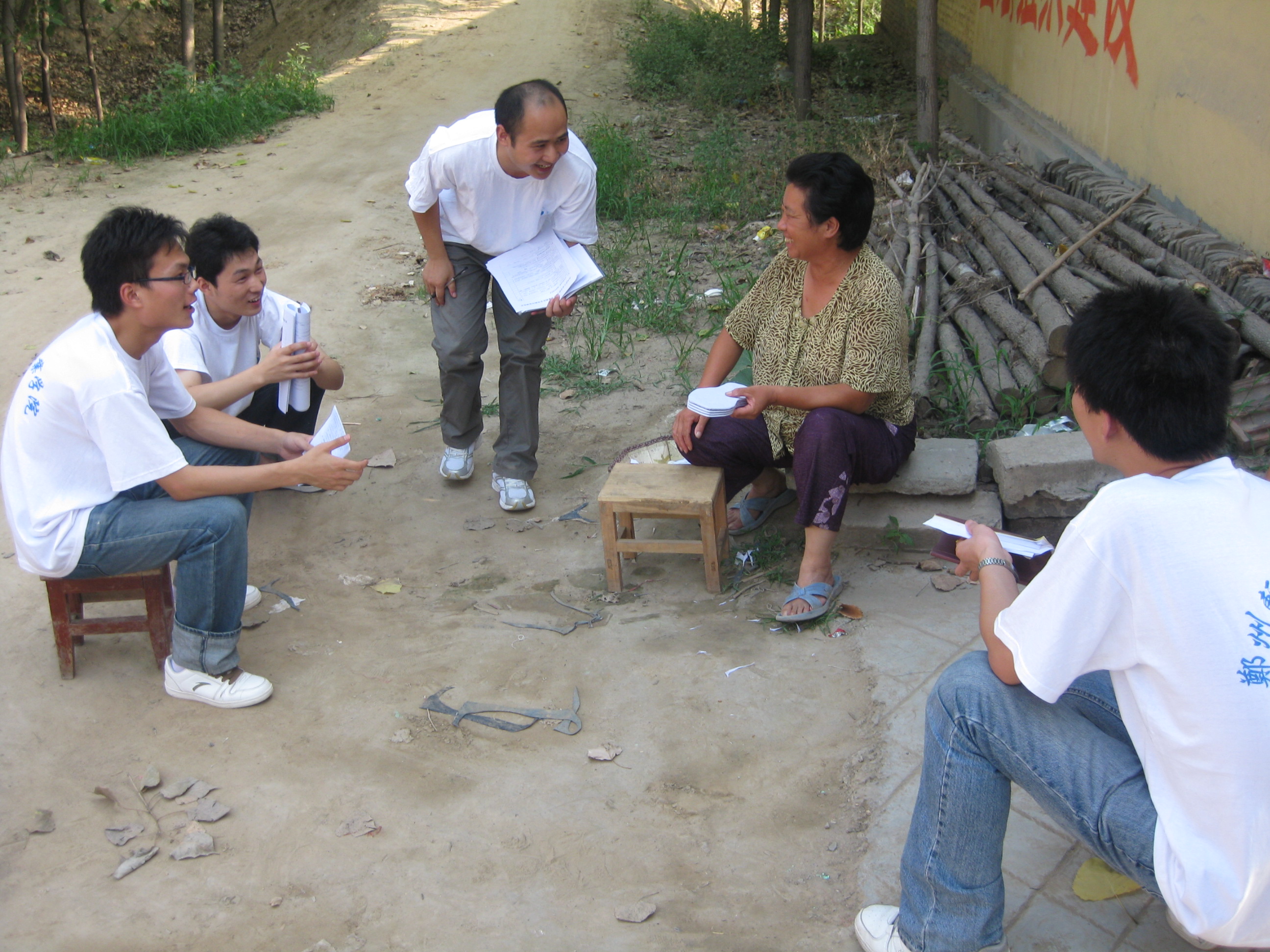 7月18日上午,小分队来到枣村乡人民政府,就新农村建设问题与当地的村干部、大学生村官进行了座谈,希望从他们那里得到更多关于农村发展的资料。座谈中,已有3年基层工作经验的大学生村官秦岩提到,三年来,自己在为村民们服务的同时与他们也建立了深厚的感情。在谈到农村教育问题时,她很是感慨:虽然近年来国家对农村的教育投资很大,但是师资力量薄弱,各项教育设施过于落后的问题依然存在,素质教育还未能够真正贯彻到实处。