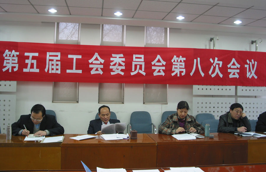 2007年3月16日,校五届工会委员会第八次会议在学校办公楼大会议室召开。校工会李世瑛主席传达了省教育工会和学校2007年工作会议精神,强调要围绕学校和上级工会的中心工作,扎实有效地开展工会的各项工作,为学校的改革发展多做贡献。