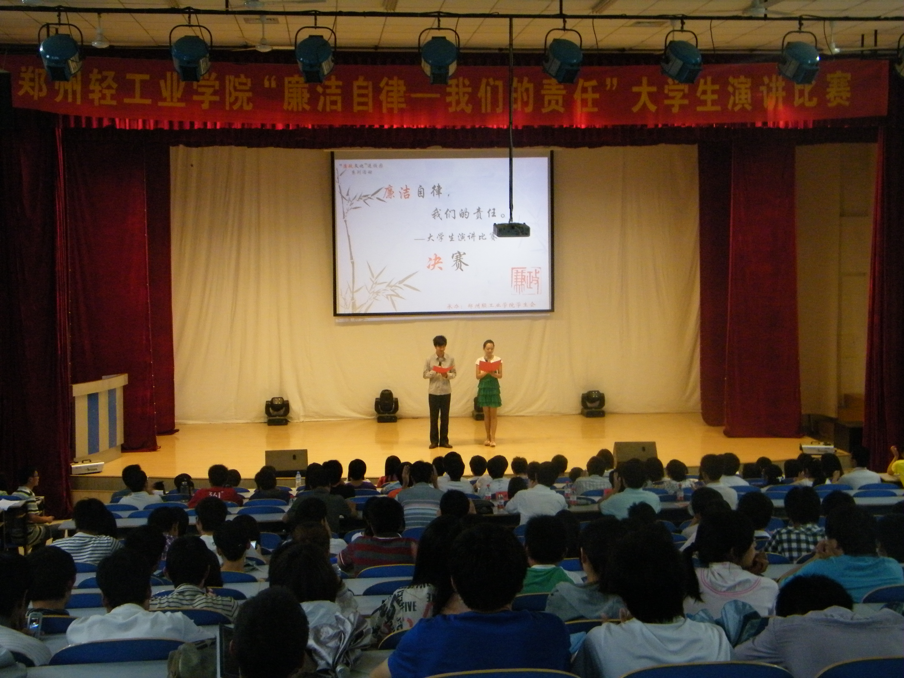 下午,“廉洁自律,我们的责任”大学生演讲比赛在科学校区电教楼208隆重举行。纪委、宣传部、学工部、团委的有关同志及科学校区部分辅导员观看了演讲比赛。