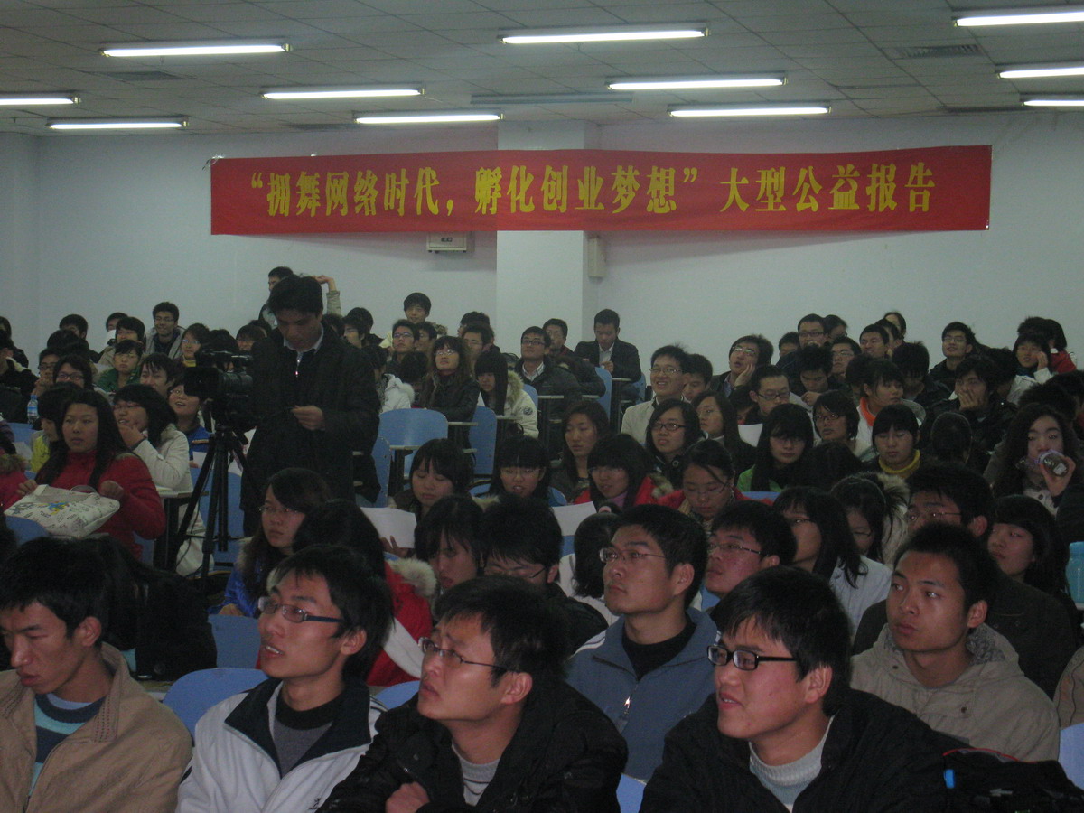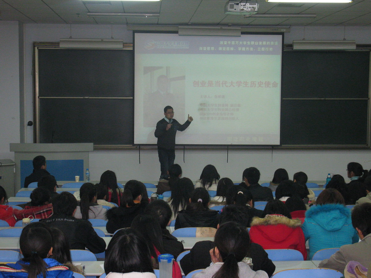 ,“拥舞网络时代,孵化创业梦想”创业报告会在教三楼100教室成功举办,大学生创业网副总裁、国家SYB(Start Your Business)创业指导老师岳明途作了精彩演讲,我校两百余名学生参加了报告会。