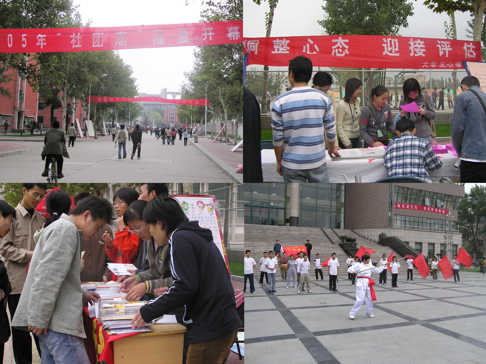 我校的爱心社、大学生心理协会、英语沙龙协会、家电与科技协会、网络协会、摄影协会、计算机协会等22个校级社团和近9个系级社团参加了本届“社团潮”活动,内容涉及演讲大赛、网络竞技赛、“心理健康”知识专题讲座、英语沙龙讲坛、模拟庭审、读书书评、电子设计制作大赛等近四十项活动。