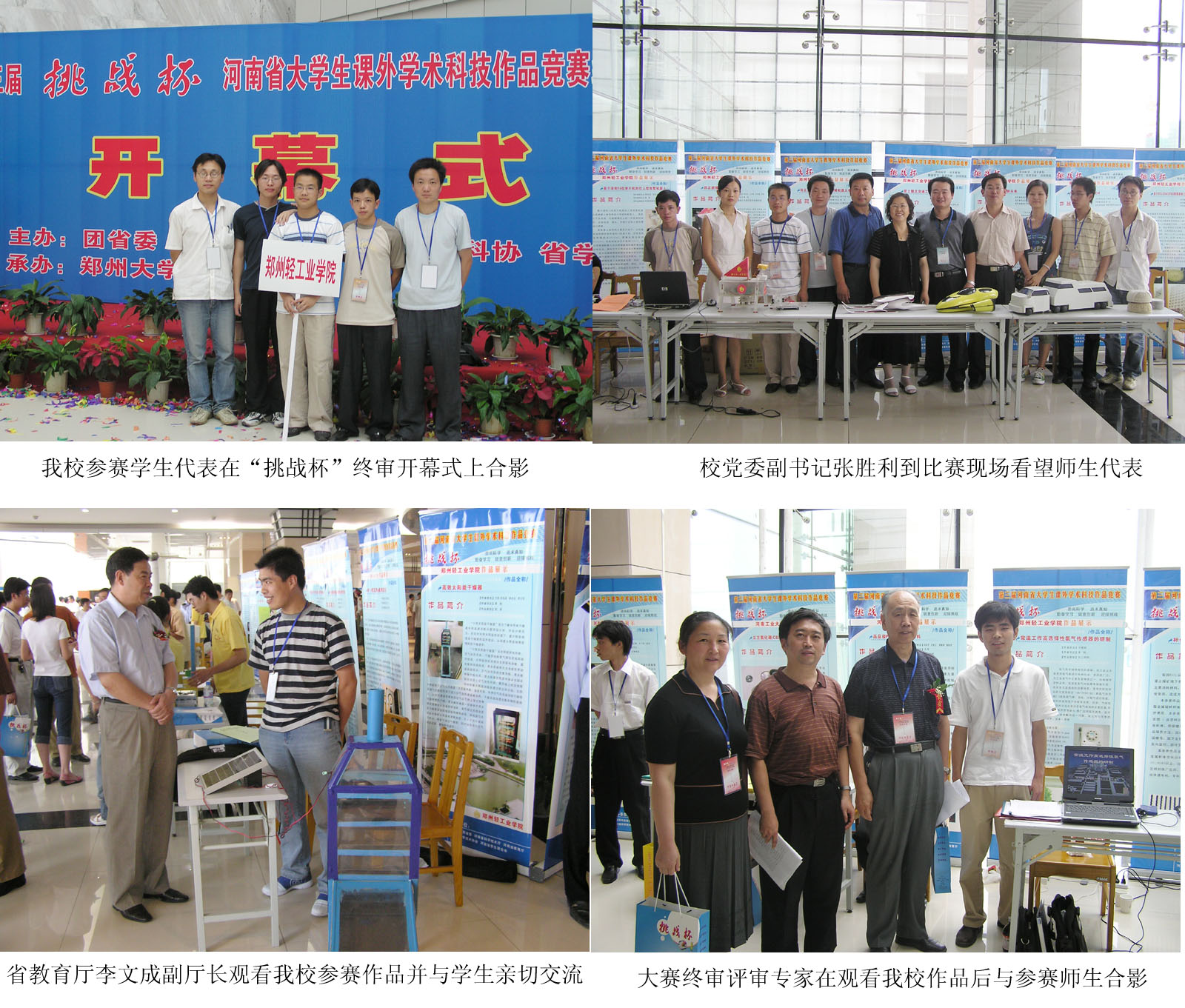 第三届“挑战杯”河南省大学生课外学术科技作品竞赛活动,自今年2月份组织申报,历时4个月,全省共有7万余名大学生报名参加,经过层层选拔,有51所高校、2600余名大学生的969件作品通过资格审查参加了全省竞赛,549件作品经专家提名,参加了终审决赛。我校共申报46件作品,其中40件作品通过资格审查,参加了全省竞赛。