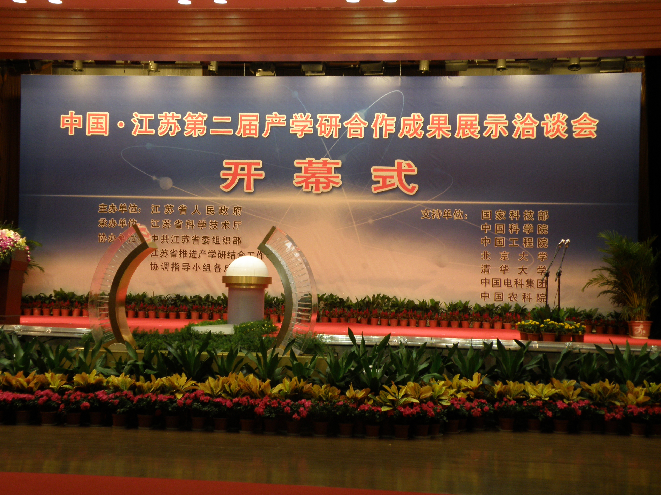 江苏省第二届产学研合作成果展示洽谈会于9月20-22日在江苏省南京市国际展览中心举办。本届洽谈会由江苏省人民政府主办,国家科技部、中国科学院、中国工程院、北京大学、清华大学、中国电子科技集团等单位支持,江苏省科技厅承办,江苏省委组织部、江苏省推进产学研结合工作协调知道小组各成员单位协办。大会以“科技保增长促转型”为主题,全面展示了江苏省的产学研合作成效及国内最新科技成果,还组织了对接洽谈、高层论坛等活动。