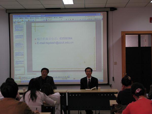培训由综合档案室的专职档案员杨朝钦老师主讲。主要从以下四个方面进行了培训:一、郑州轻工业学院部门立卷归档规范;二、郑州轻工业学院档案实体分类方案;三、各部门档案归档范围及要求;四、郑州轻工业学院电子文件归档范围。通过这次培训,使各部门兼职档案人员明确了工作职责,初步了解了我校档案实体分类办法,熟悉了部门立卷归档的范围、要求和工作流程,为下一步做好部门立卷归档工作打下了基础。