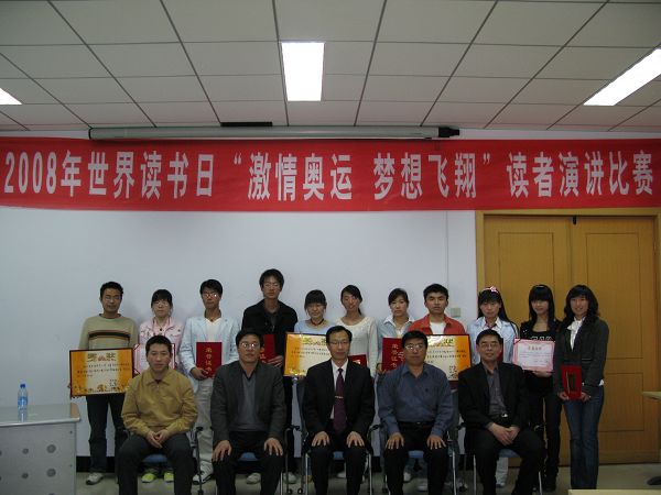 为迎接“2008北京奥运”在我国成功举办,让广大读者更好地了解奥运知识、深切体会并发扬奥运精神,将奥运与读书更好的结合起来,营造积极向上的校园文化氛围,丰富同学们的课余文化生活,使广大同学有一个锻炼能力、施展才华的舞台,借助4月23日第十三个“世界读书日”活动,由图书馆与宣传部、校团委联合举办,校读书协会承办的“激情奥运,梦想飞翔”演讲比赛经过4月初的预赛、复赛,于4月24日下午在图书馆视频报告厅举行了最后的决赛及颁奖,党委宣传部李文渊副部长、团委高建奇副书记和图书馆领导亲临现场担任评委并为获奖选手颁奖。演讲暨颁奖仪式由图书馆副馆长朱理达同志主持。