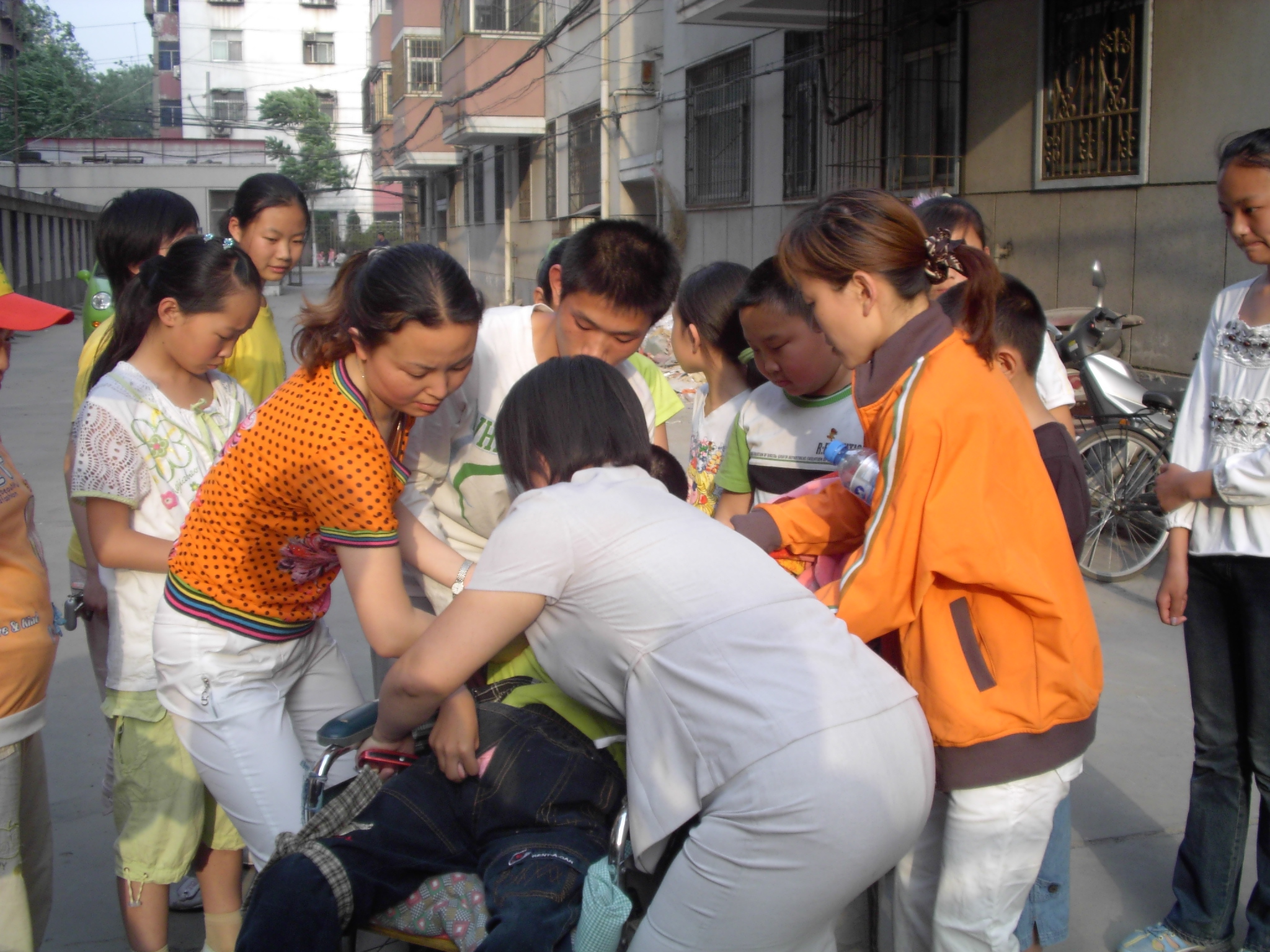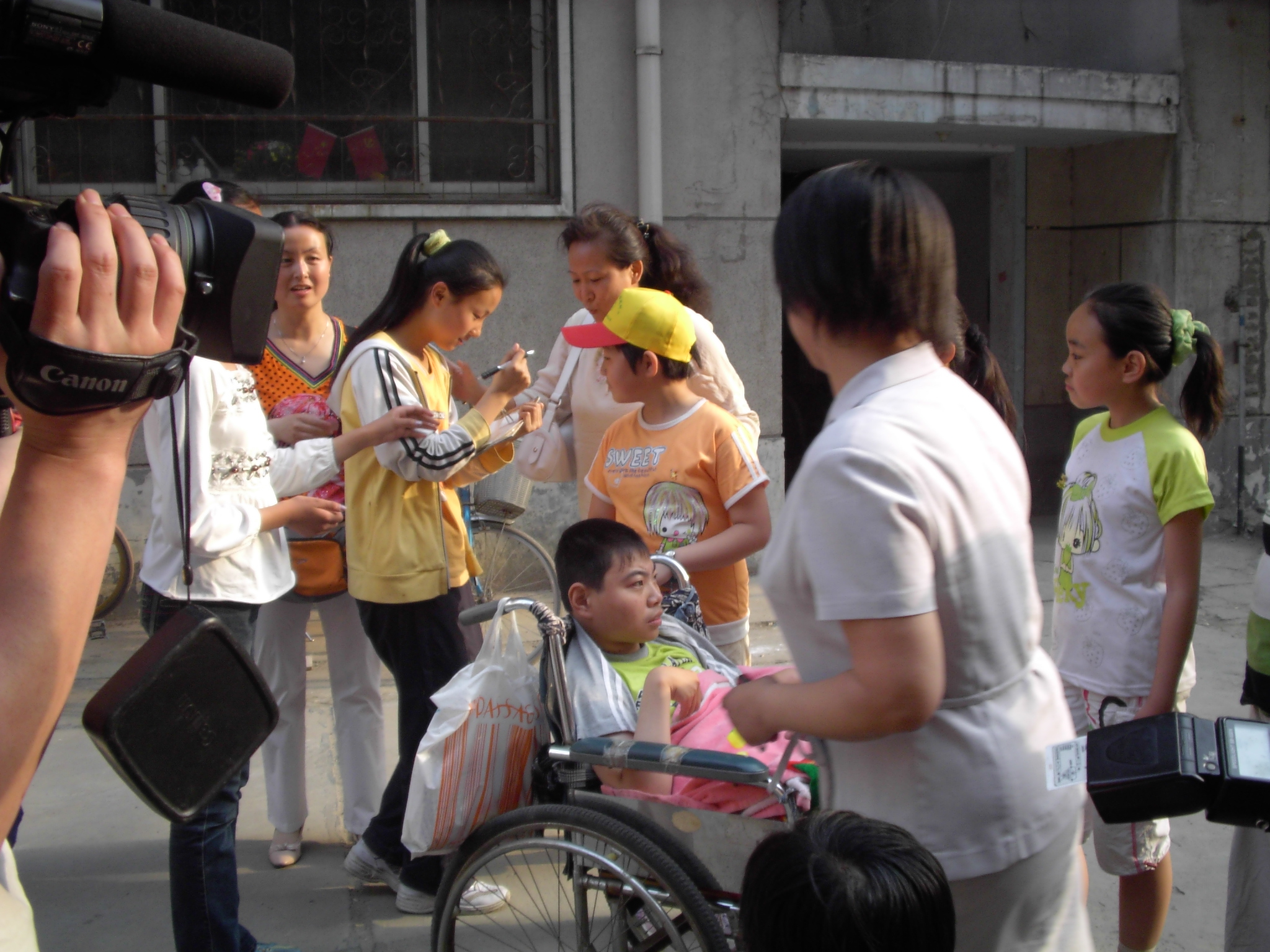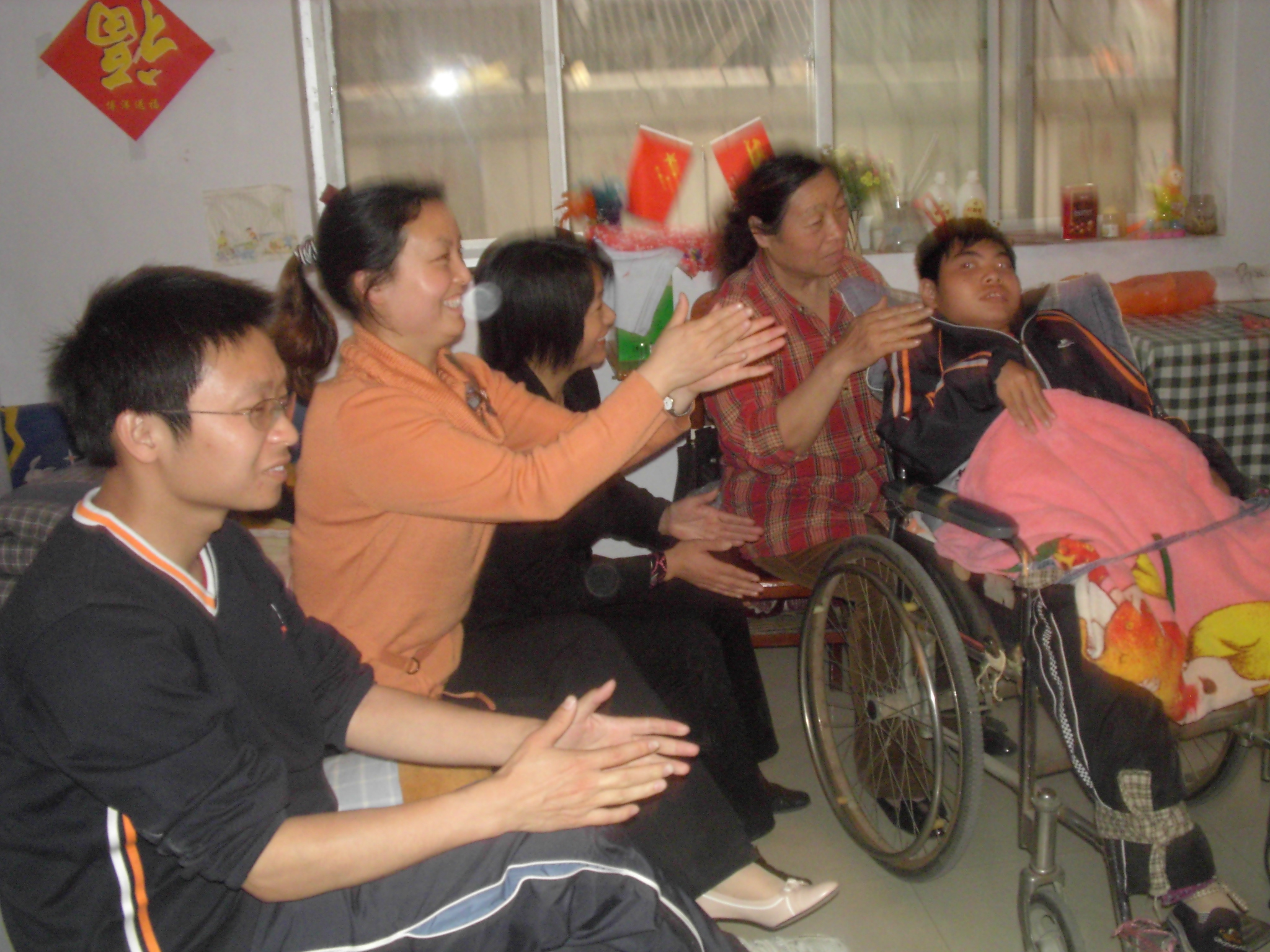 周大健,一个美丽的名字,而它的主人却是一个严重的脑瘫患者。半岁时,周大健被狠心的父母抛弃街头,后被好心人收养,14年了,至今生活不能完全自理。得知这一情况后,附属学校从领导到普通员工都十分关心,特意安排老师和学生每周两次去帮助他,耐心的教他说话,教他识字,并为他做心理辅导,使小健的生活充满了同龄人的温馨和快乐。每当看到小健那愉快的笑容,我们的老师们都高兴得满含泪花。同时,我校此项活动被河南日报、郑州日报、河南人民广播电台、郑州一台、郑州二台等多家新闻媒体报道,引起了强烈反响! “我们将一如既往的关心和照顾他,使他永远生活在温暖之中!” 附属学校 2006.5.19