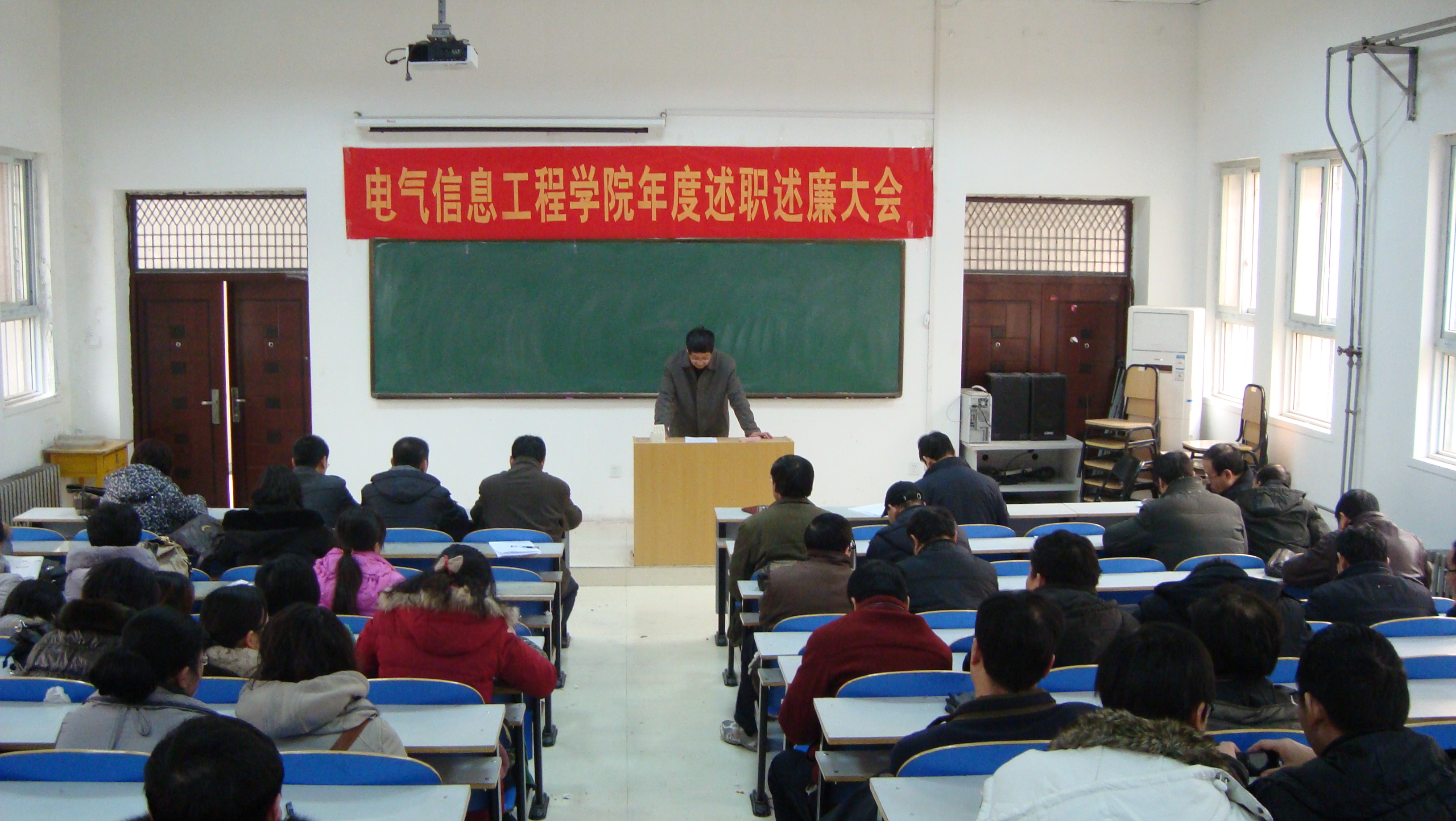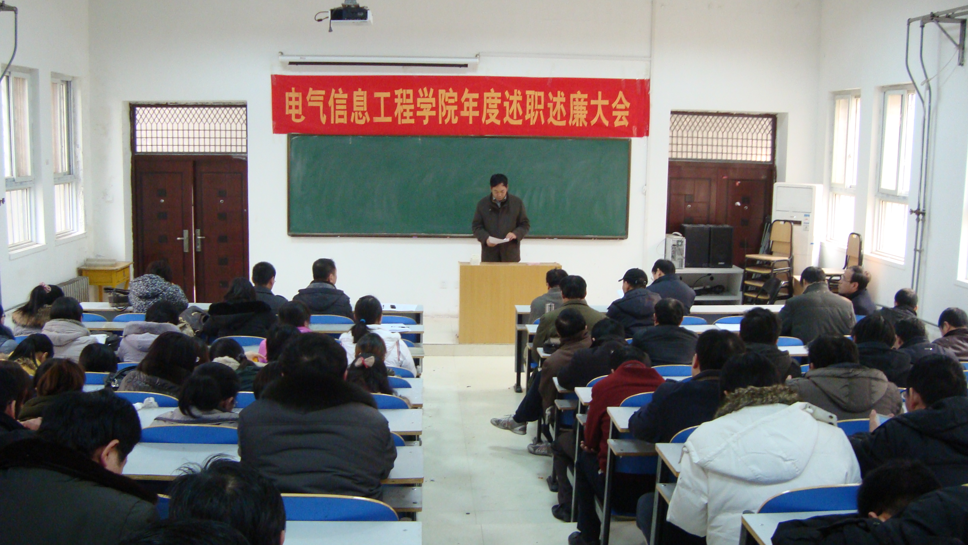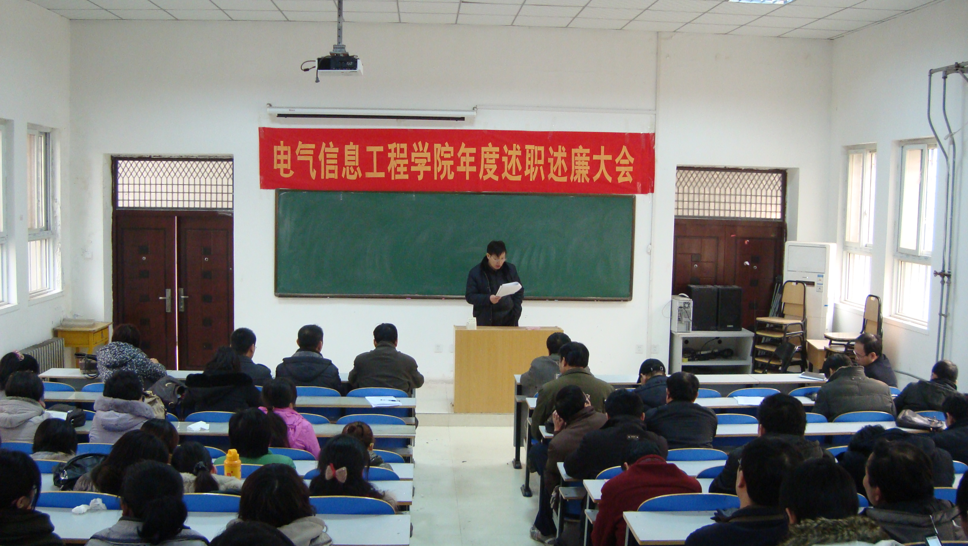 2011年12月22日下午2:30,电西阶会议室进行电气信息工程学院2011年度中层干部述职述廉述学大会。学校组织部、纪检处以及全院教职工参加会议。