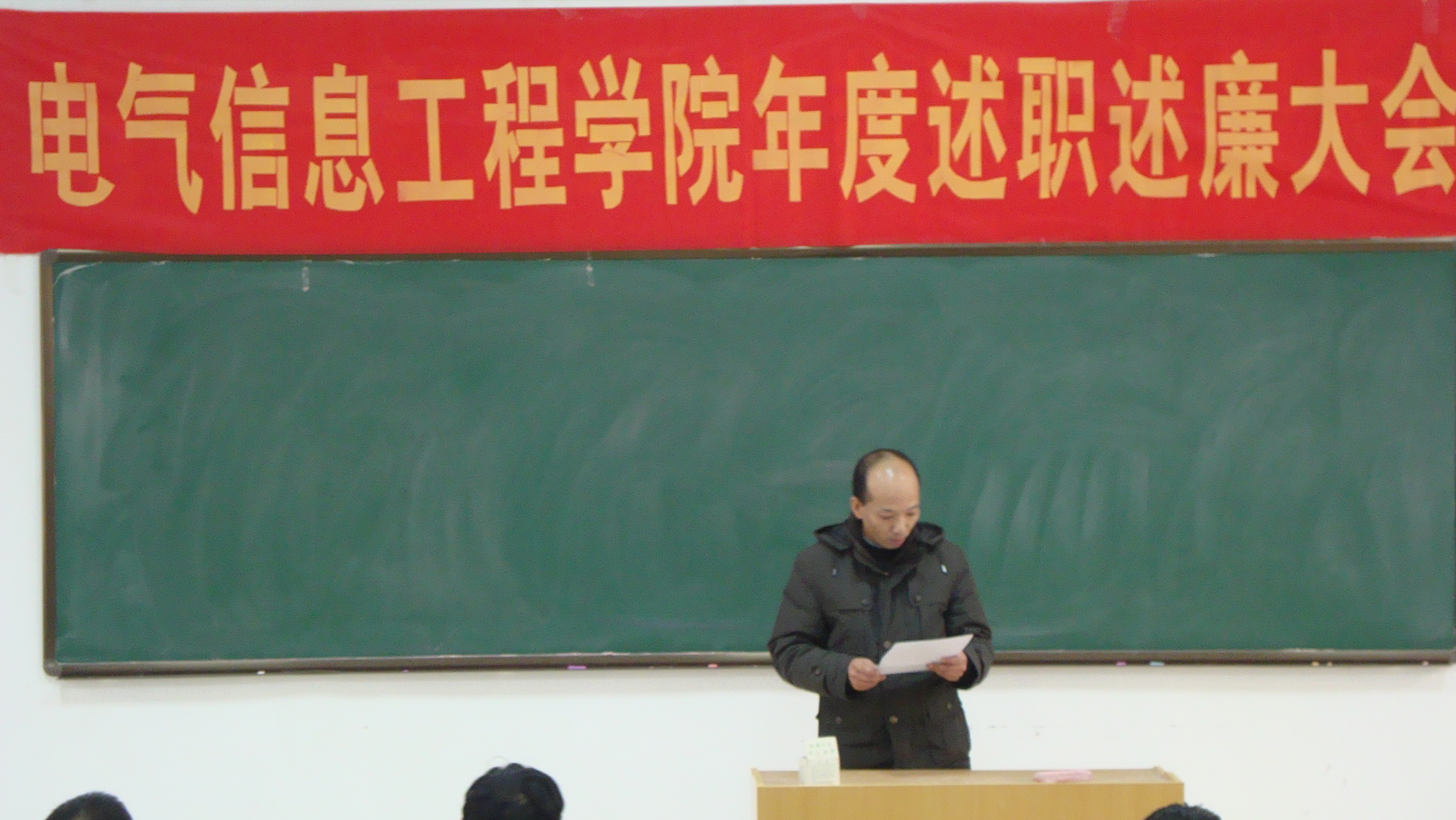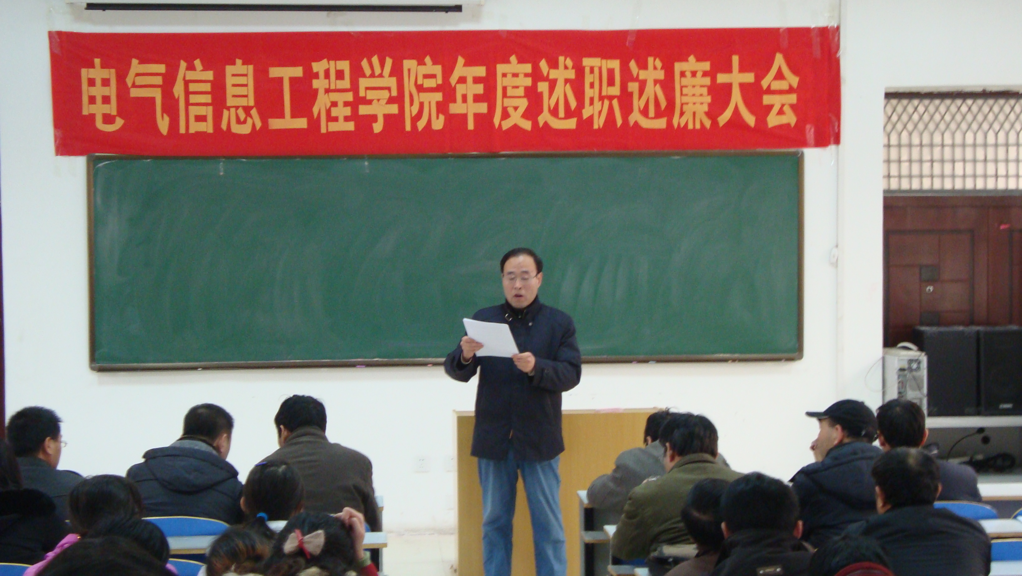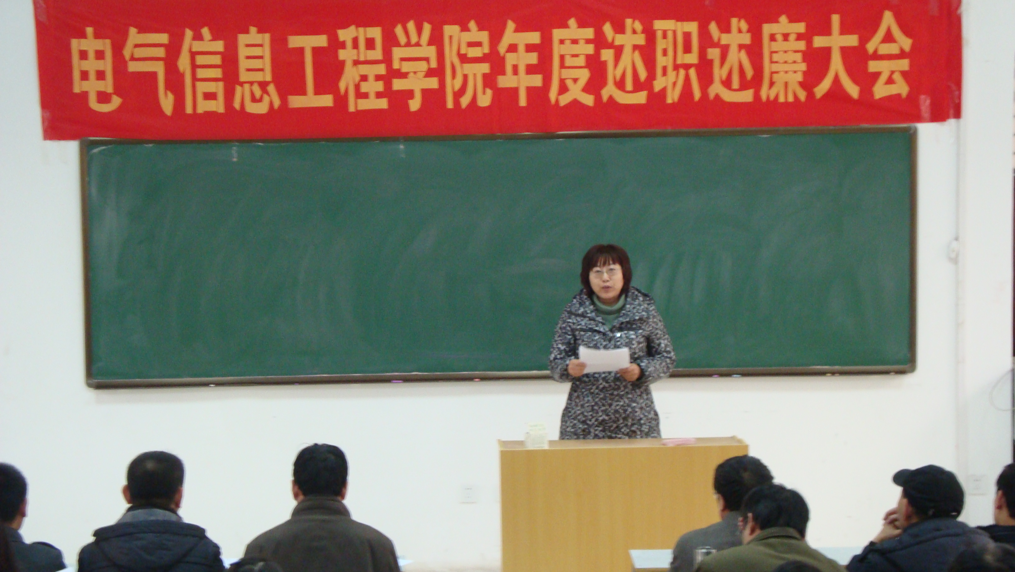 2011年12月22日下午2:30,电西阶会议室进行电气信息工程学院2011年度中层干部述职述廉述学大会。学校组织部、纪检处以及全院教职工参加会议。