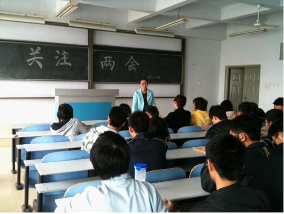 各班团支部以班会学习、座谈形式,介绍“两会”相关内容,同学们就“两会”中与大学生息息相关的热点问题等内容进行了讨论,能够理性地思考问题,表达自己的观点。有同学说今年两会的召开的意义,有同学谈论对国家在十二五期间的希望和信心,还有同学就某些热点议案发表自己的观点看法,一场场热热闹闹的讨论会就在这群生气勃勃,朝气澎湃的大学生中进行着。