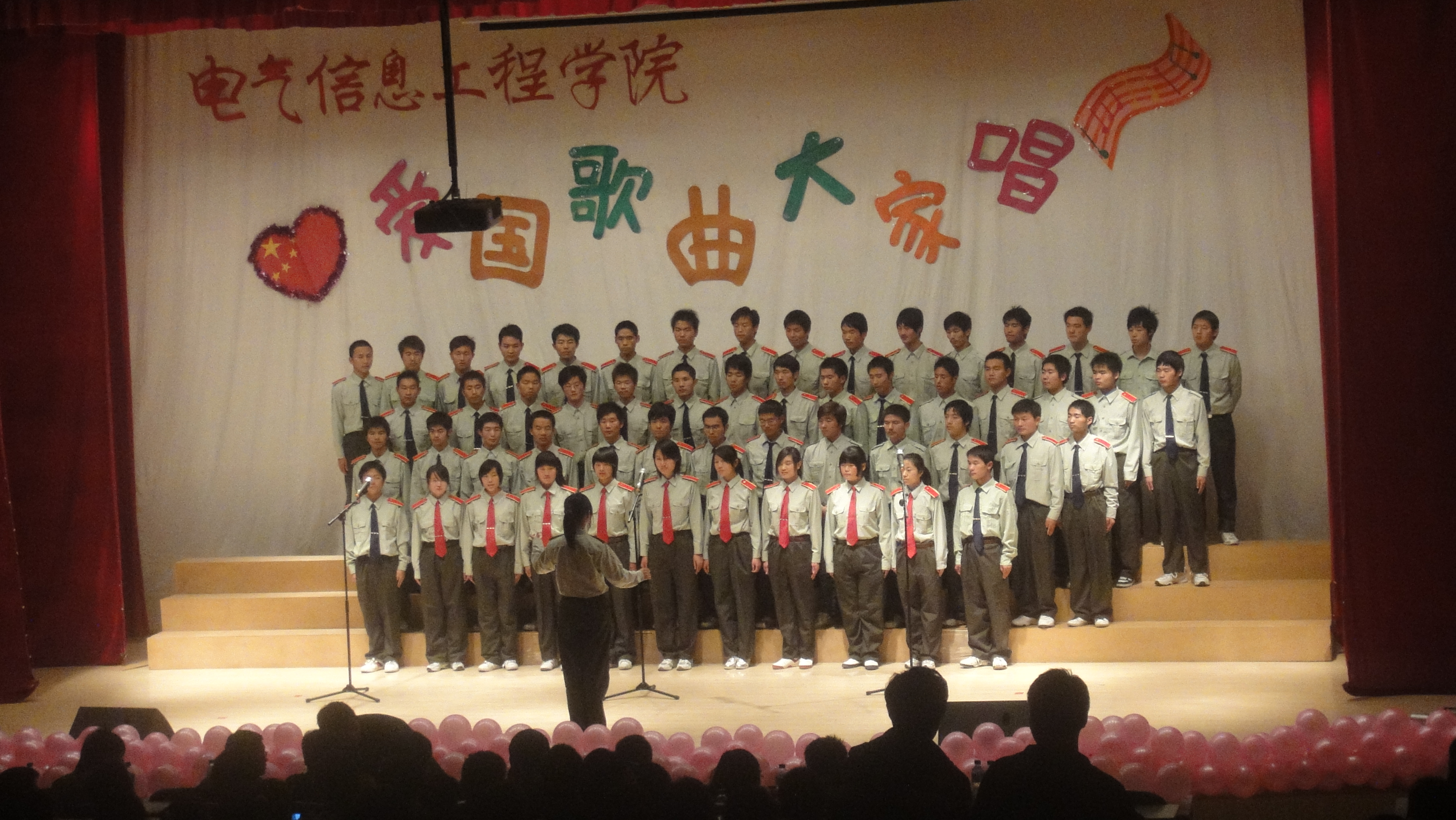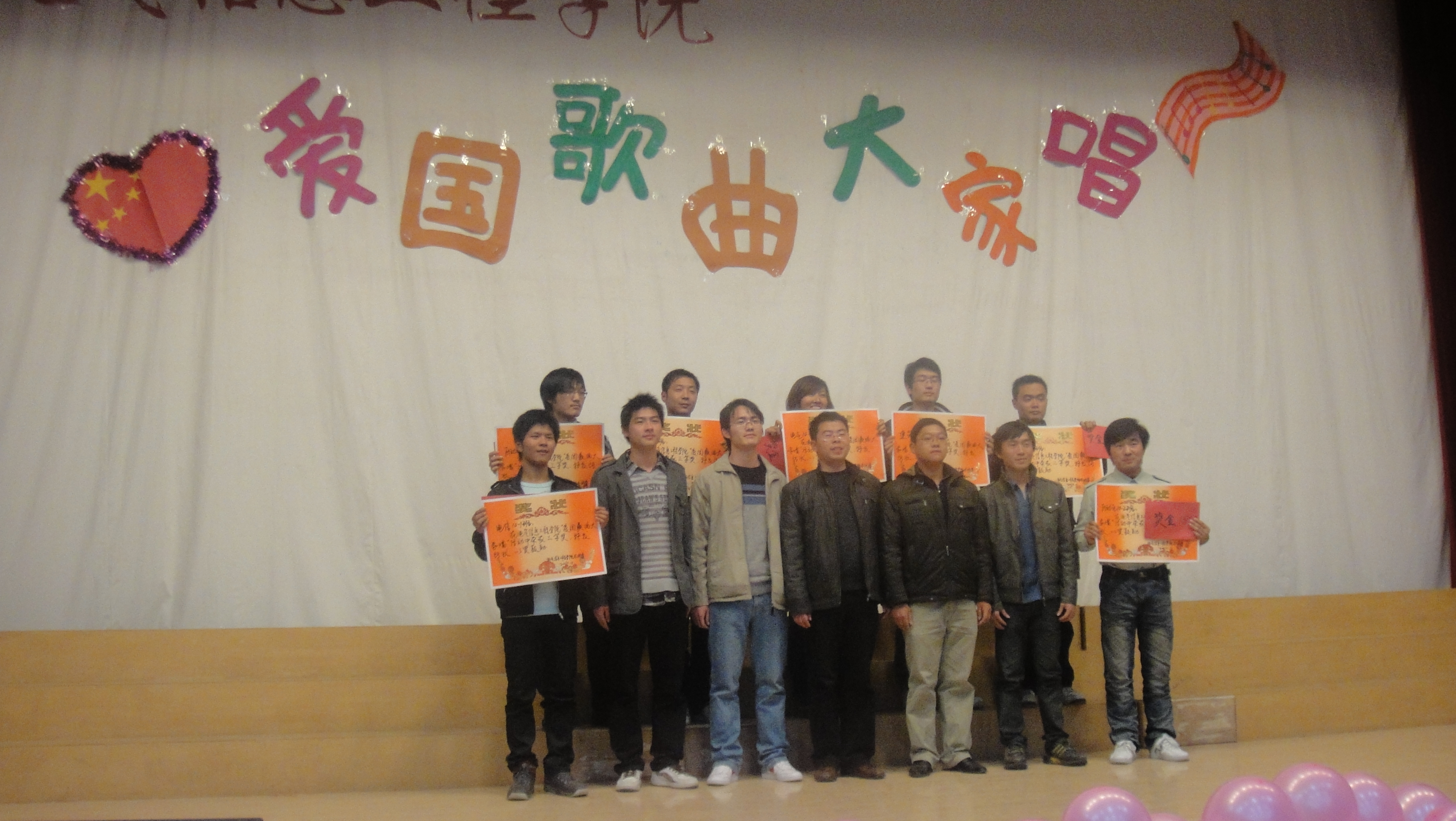 为纪念“一二・九运动”七十五周年,弘扬爱国主义和集体主义精神,促进校园精神文明建设,电气信息工程学院于11月28日在科学校区208活动室成功举办“爱国歌曲大家唱”歌咏比赛,我院领导和全体辅导员到场观看演出。