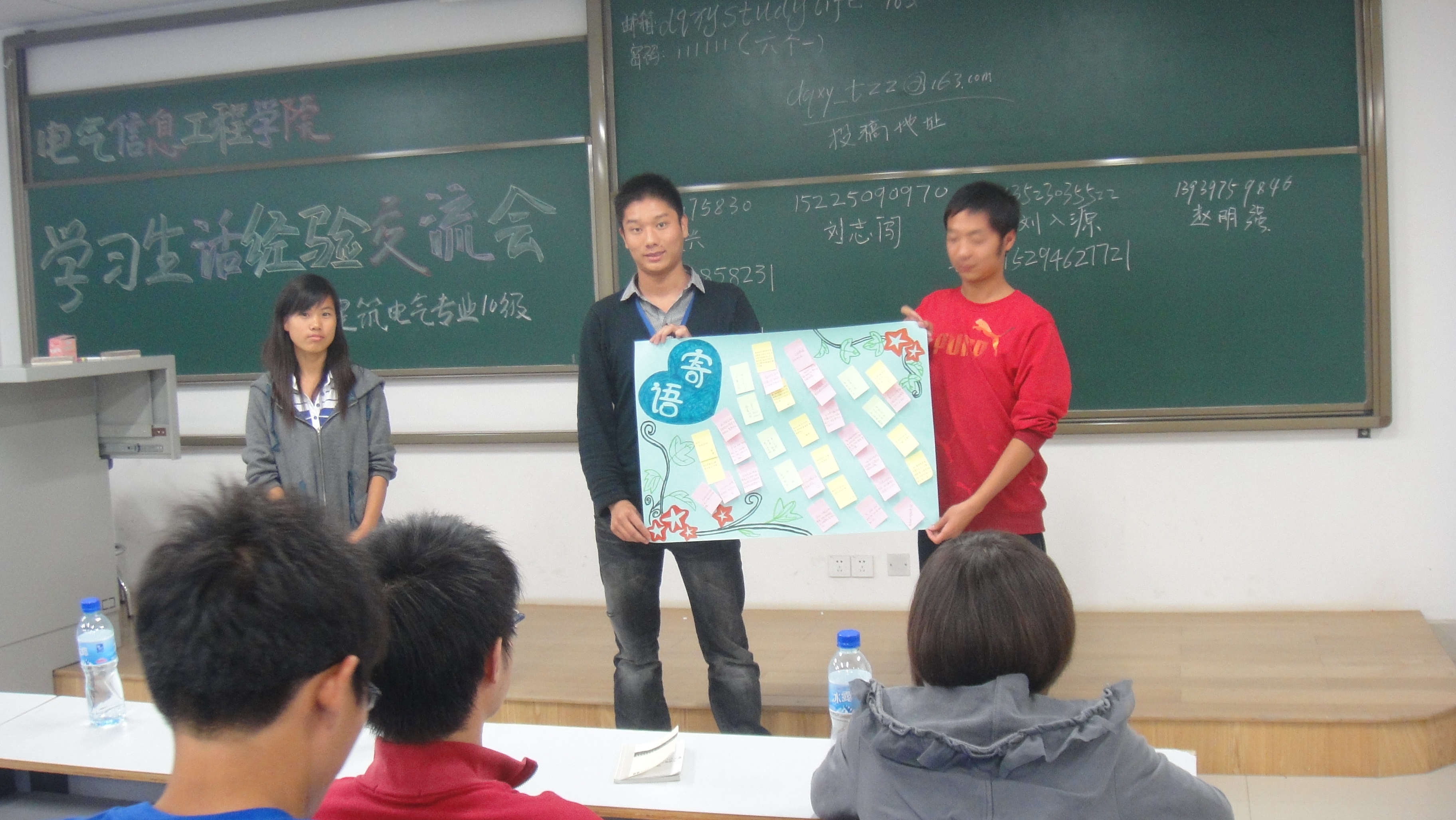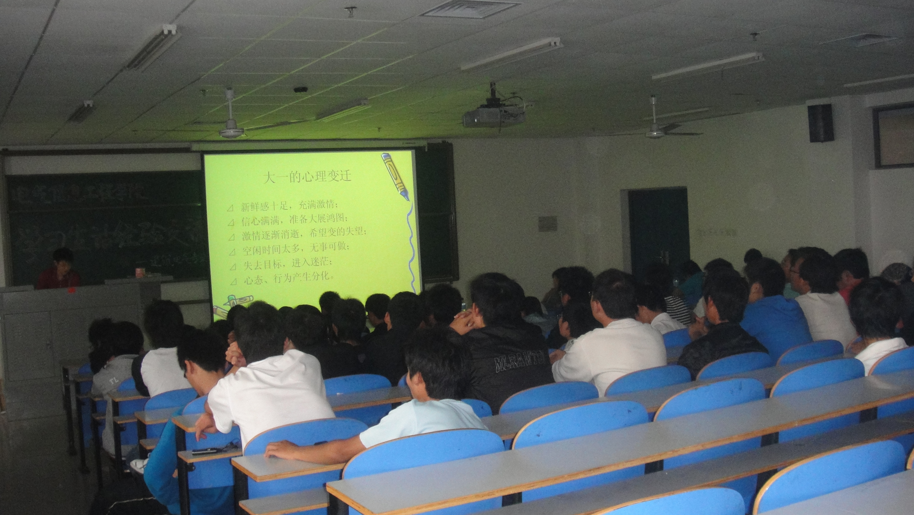 10月9日下午,电气信息工程学院在科学校区组织召开新生学习生活经验交流会,分团委老师、辅导员,学生会全体干部、09级优秀学生代表及全体10级学生参加交流会。