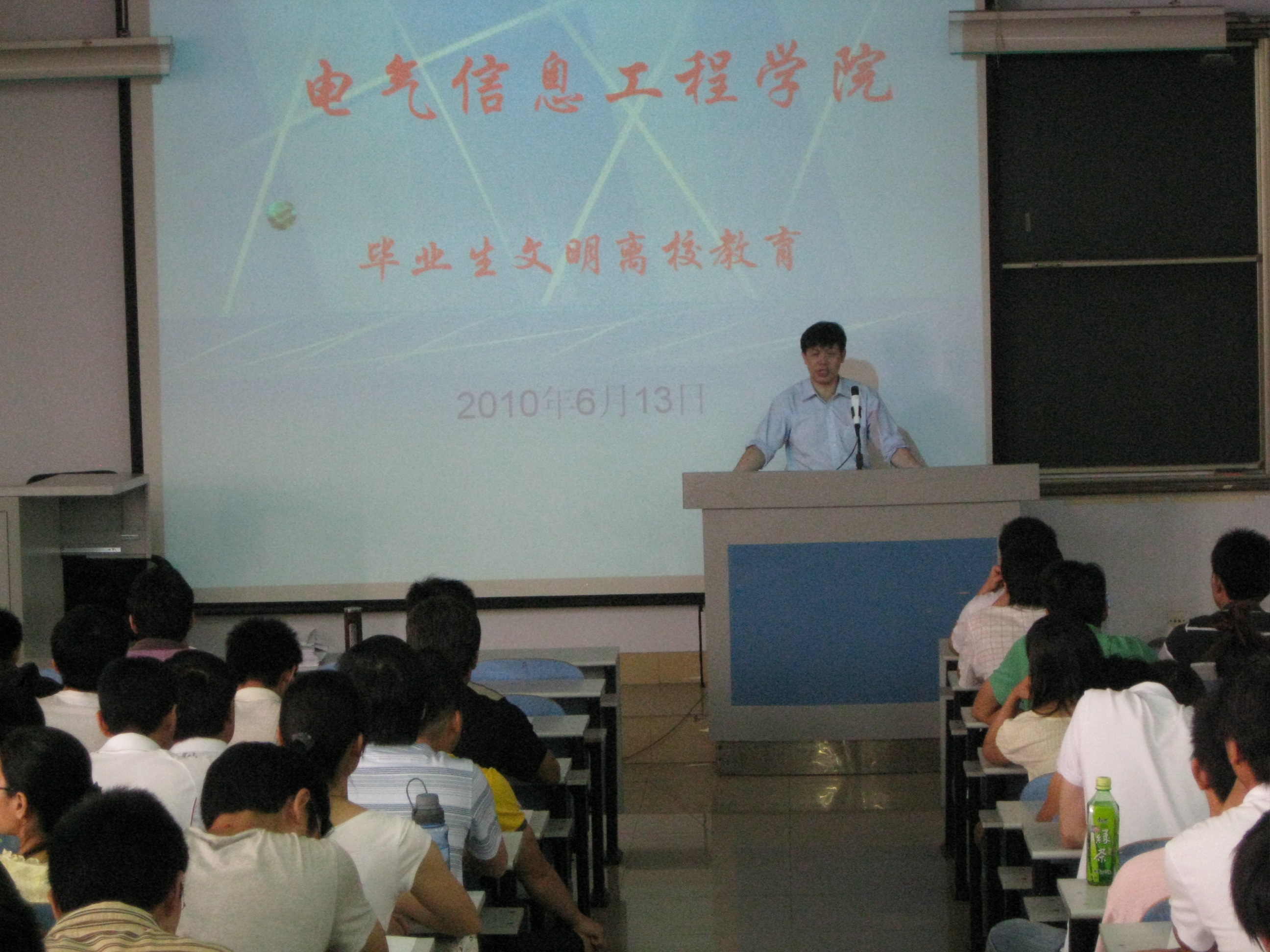 6月13日上午10:00,电气信息工程学院在教三楼302教室召开2010届全体毕业生大会,电气信息工程学院党政领导、2010届全体毕业生及毕业班辅导员老师参加此次大会。